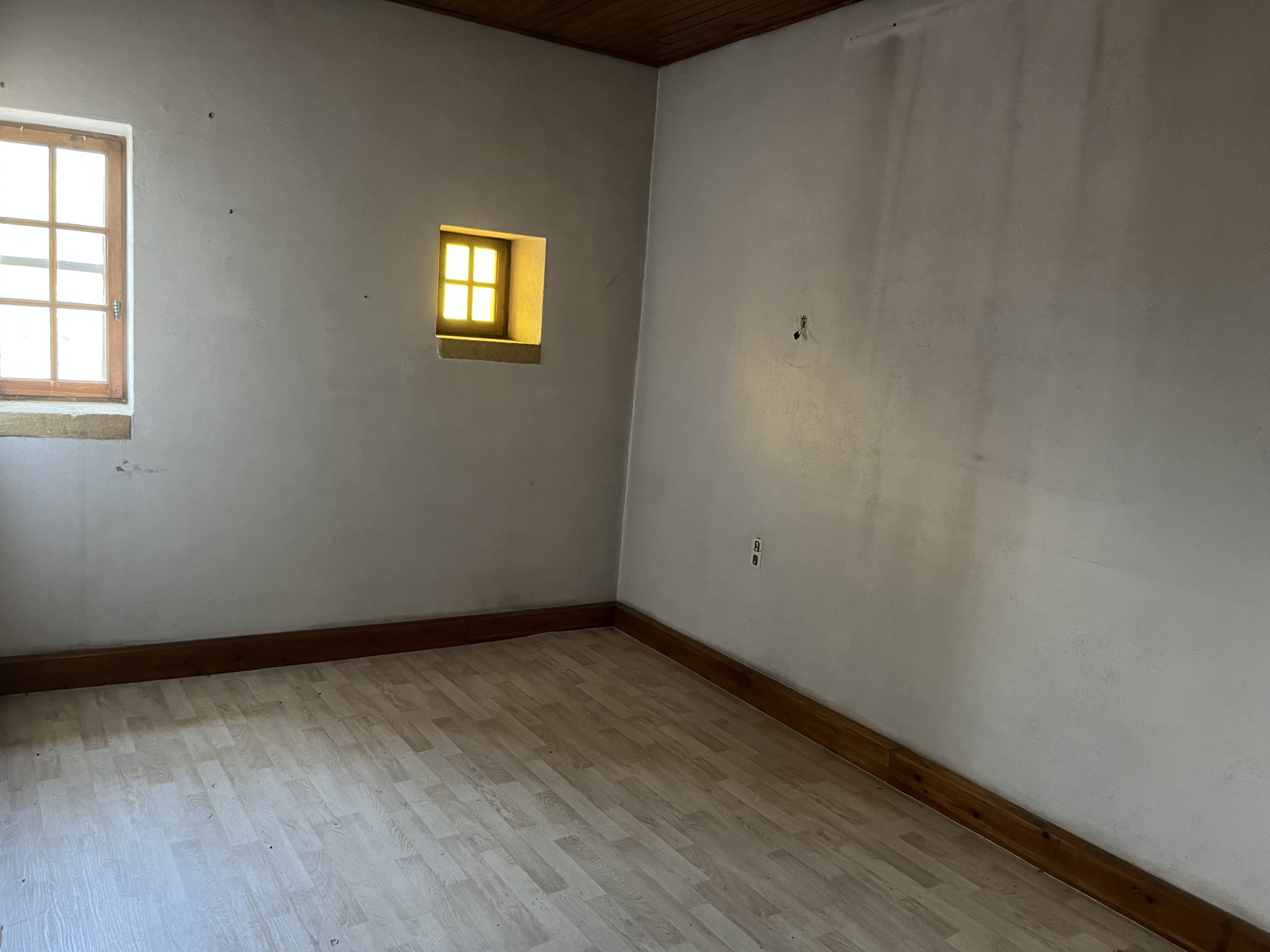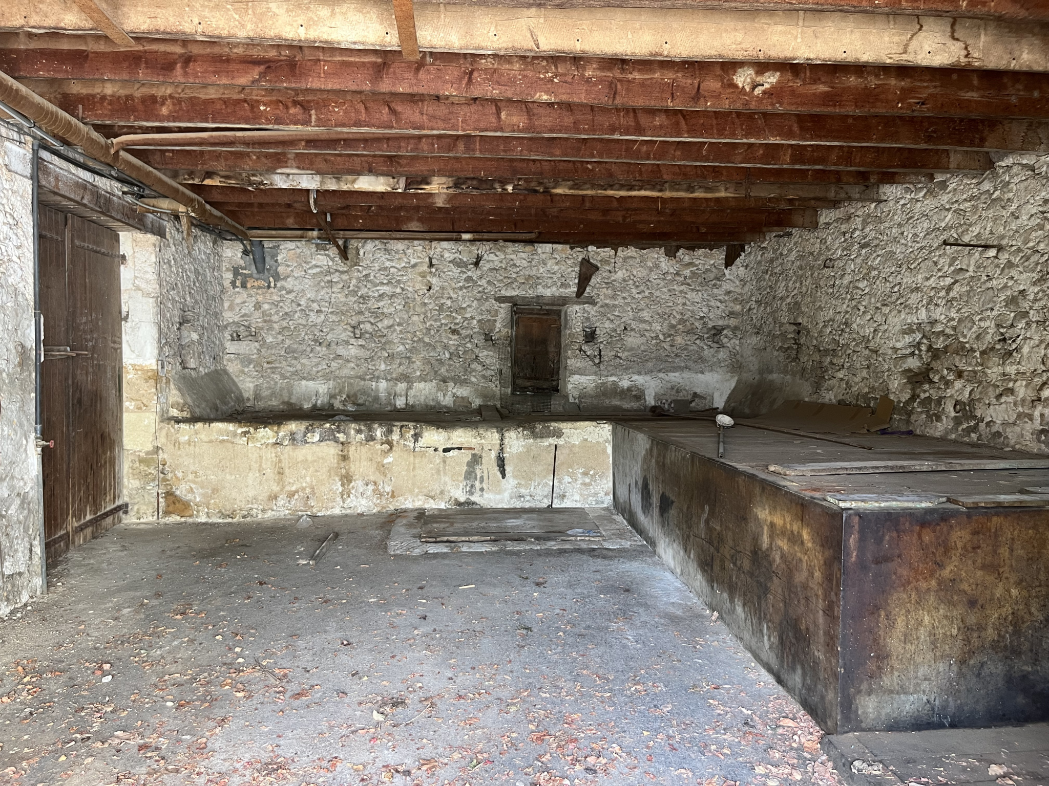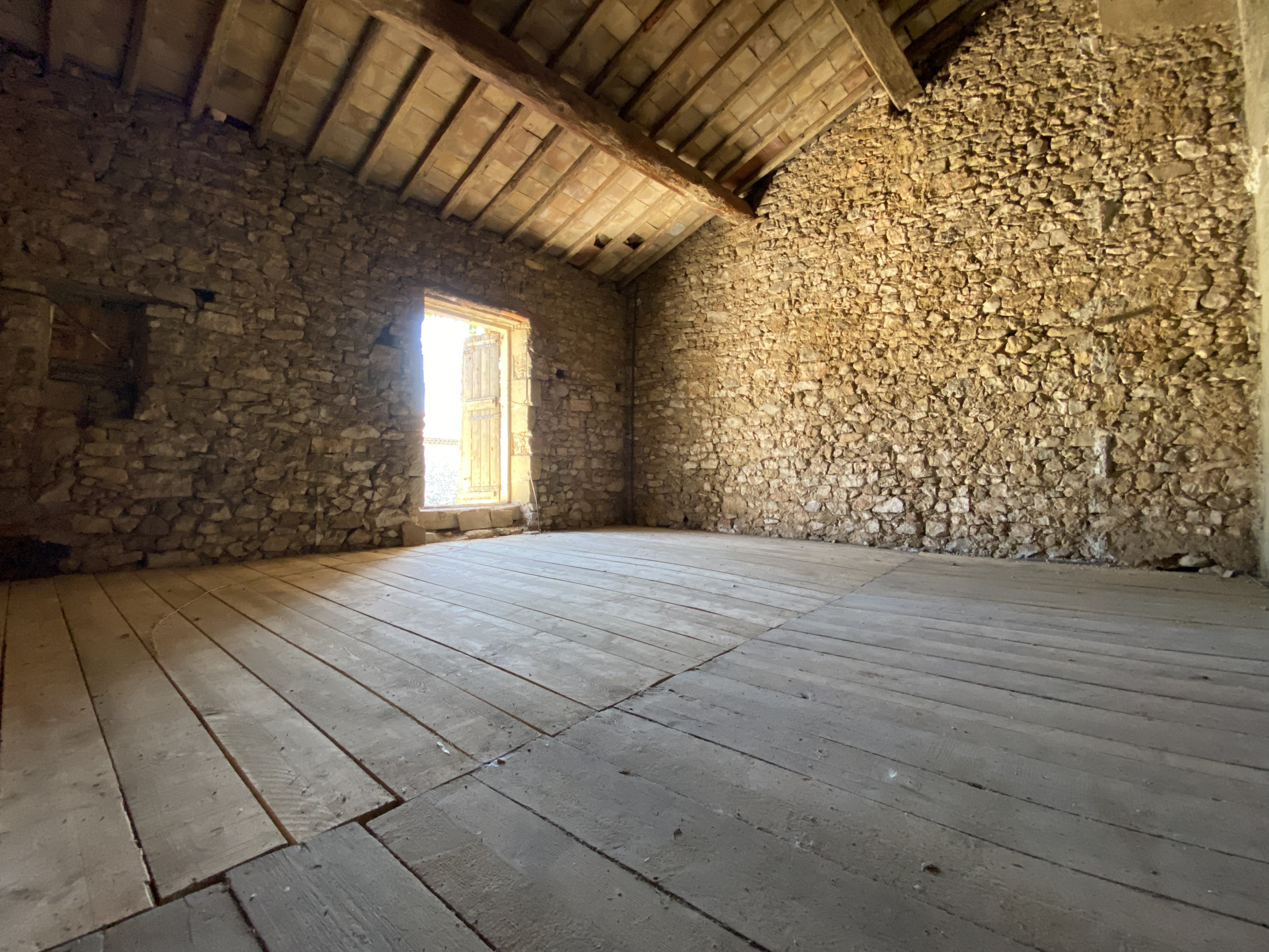 Au rez de chaussée, vous disposez d'un garage de 75 m2 et à l'étage d'une chambre, d'une salle de bain, de WC et d'une pièce en pierres de 40 m2 à aménager.