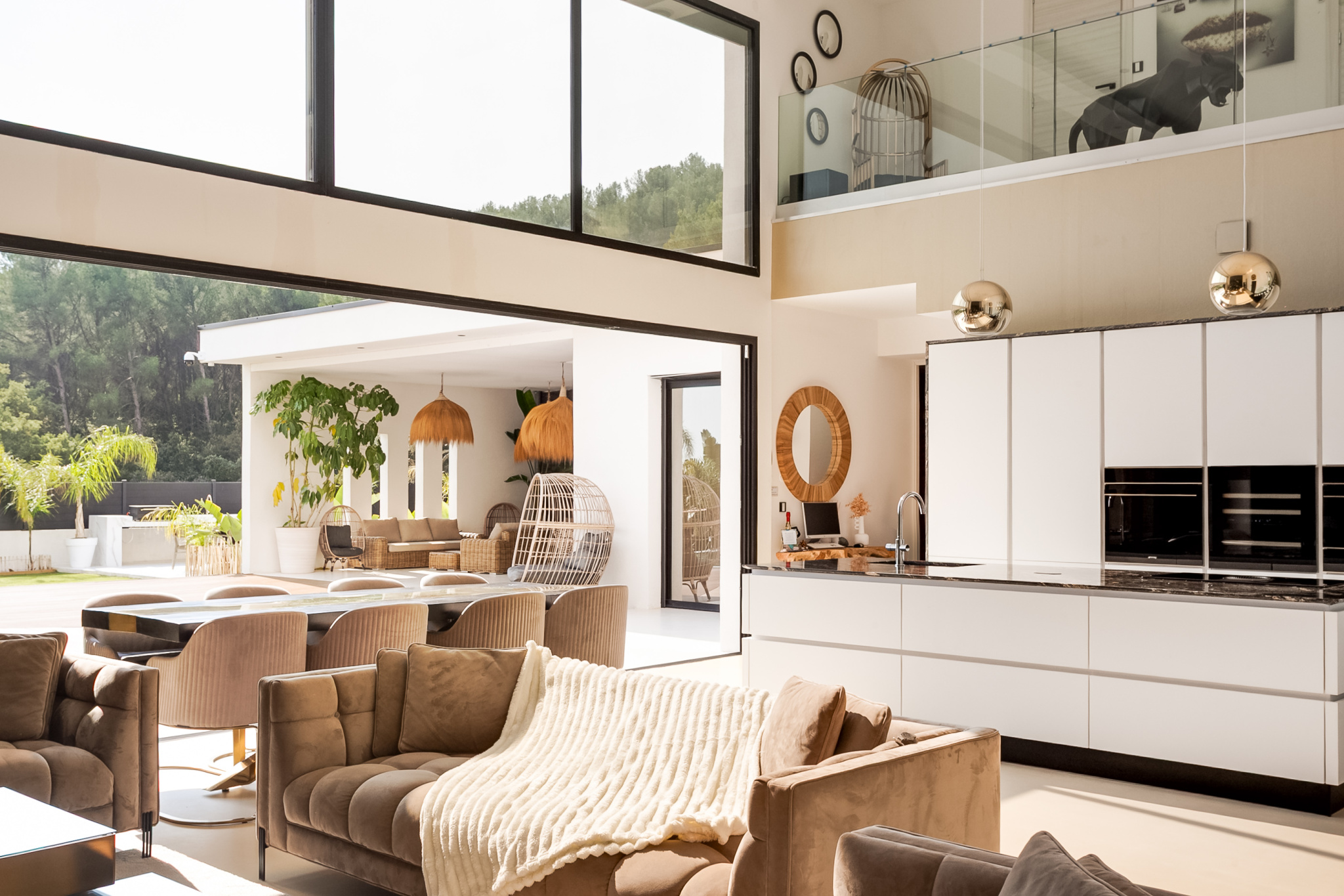 À quelques minutes du centre de Bandol, cette villa contemporaine de 195 m2 (185 m2 Carrez) dévoile une signature architecturale rare, où la lumière, le calme et le raffinement composent un art de vivre résolument méditerranéen. Implantée sur un terrain paysager de 1 260 m2, elle séduit dès les premiers pas par ses lignes sobres et son atmosphère apaisante. Les volumes sont harmonieux, les matériaux choisis avec exigence, et chaque espace reflète une volonté claire : offrir un quotidien élégant, fluide et confortable. La pièce de vie d'environ 70 m2 s'ouvre généreusement sur l'extérieur. Entre salon, salle à manger et cuisine ouverte aux accents contemporains, l'ensemble baigne dans une lumière traversante et raconte une maison pensée pour partager, recevoir, savourer. Le rez-de-chaussée accueille une somptueuse suite parentale avec salle d'eau et WC, ainsi que deux chambres, chacune dotée de sa salle d'eau privative. À l'étage, une salle de bain, une troisième chambre et une quatrième chambre complètent ce cocon familial. À l'extérieur, le jardin paysager révèle un espace de détente d'un rare standing : piscine miroir 15 × 5 m, spa de 20 m2, vaste pool house de 60 m2 et double garage de 45 m2 Un ensemble parfaitement intégré à son environnement, préservant une intimité totale et une ambiance végétale apaisante. L'installation de panneaux solaires vient enrichir le lieu d'une dimension durable et performante, sans jamais compromettre l'esthétique.