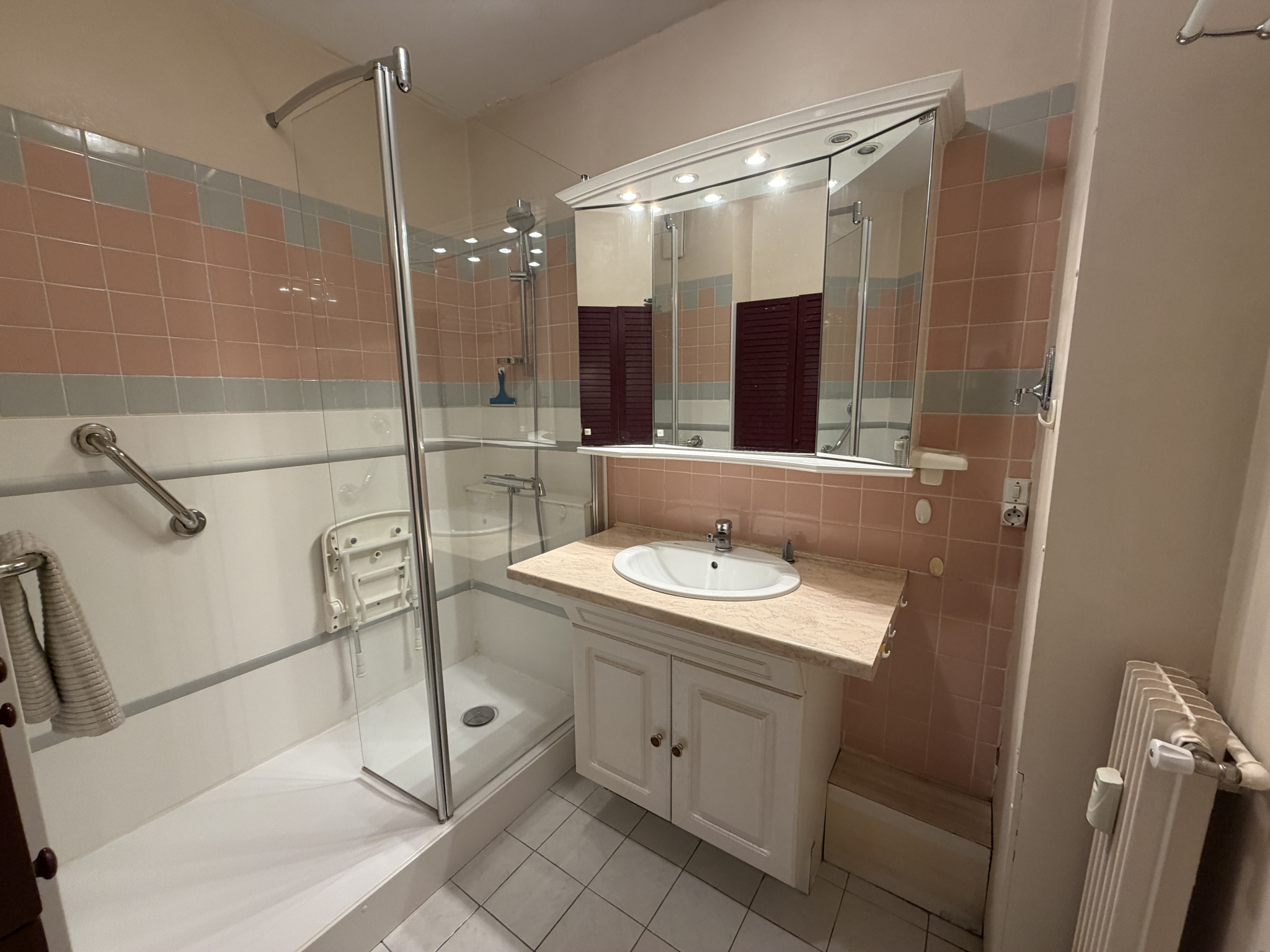 Il se compose d'une cuisine séparée aménagée et équipée, d'une pièce de vie avec accès au balcon, d'un salon ou 3ème chambre, deux chambres dont une avec placard, une salle d'eau équipée pour personne à mobilité réduite et un cellier