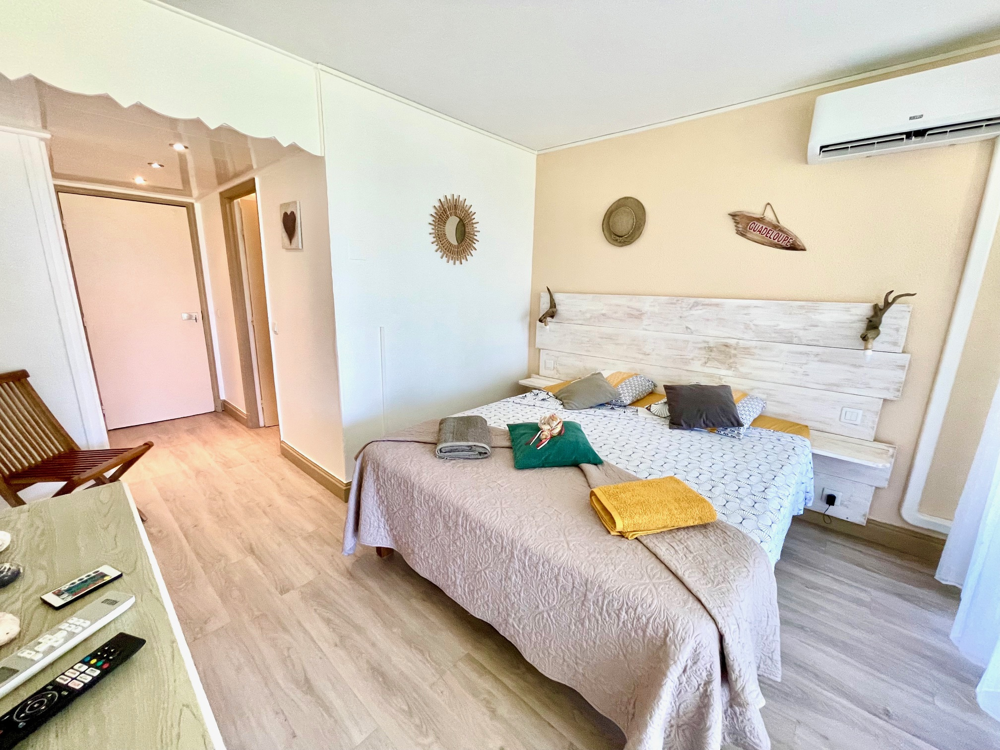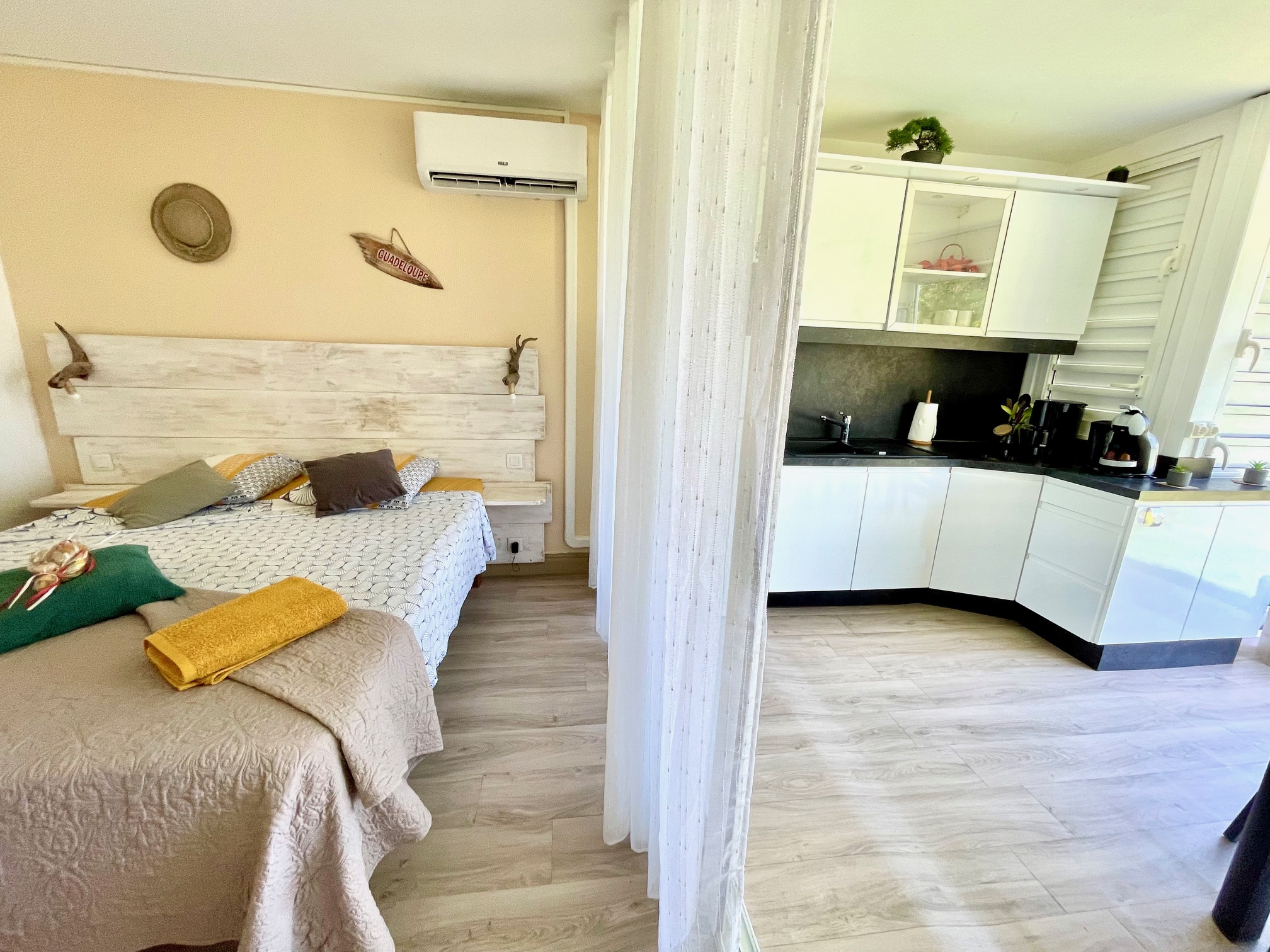 ANSE DES ROCHERS AVEC VUE DEGAGEE : T2 meublé en RDC de 29 m2 (terrasse comprise) avec accès direct plage, piscine, tennis. La résidence est sécurisée avec parking, gardien et restaurant. Studio rénové composé d'une entrée avec placard, 1 salle d'eau/WC/Lave-Linge, 1 belle chambre climatisée, 1 grande cuisine équipée avec coin repas sur la terrasse et vue dégagéee. Pour plus d'informations contacter Laurence CAILLET par WHATSAPP et SMS au +590 690 002 312 ou par SMS au 0690 35 97 18 et par mail : laurence@immo971.com et/ou cailletlo971@gmail.com en laissant vos coordonnées et l'objet de votre appel.
