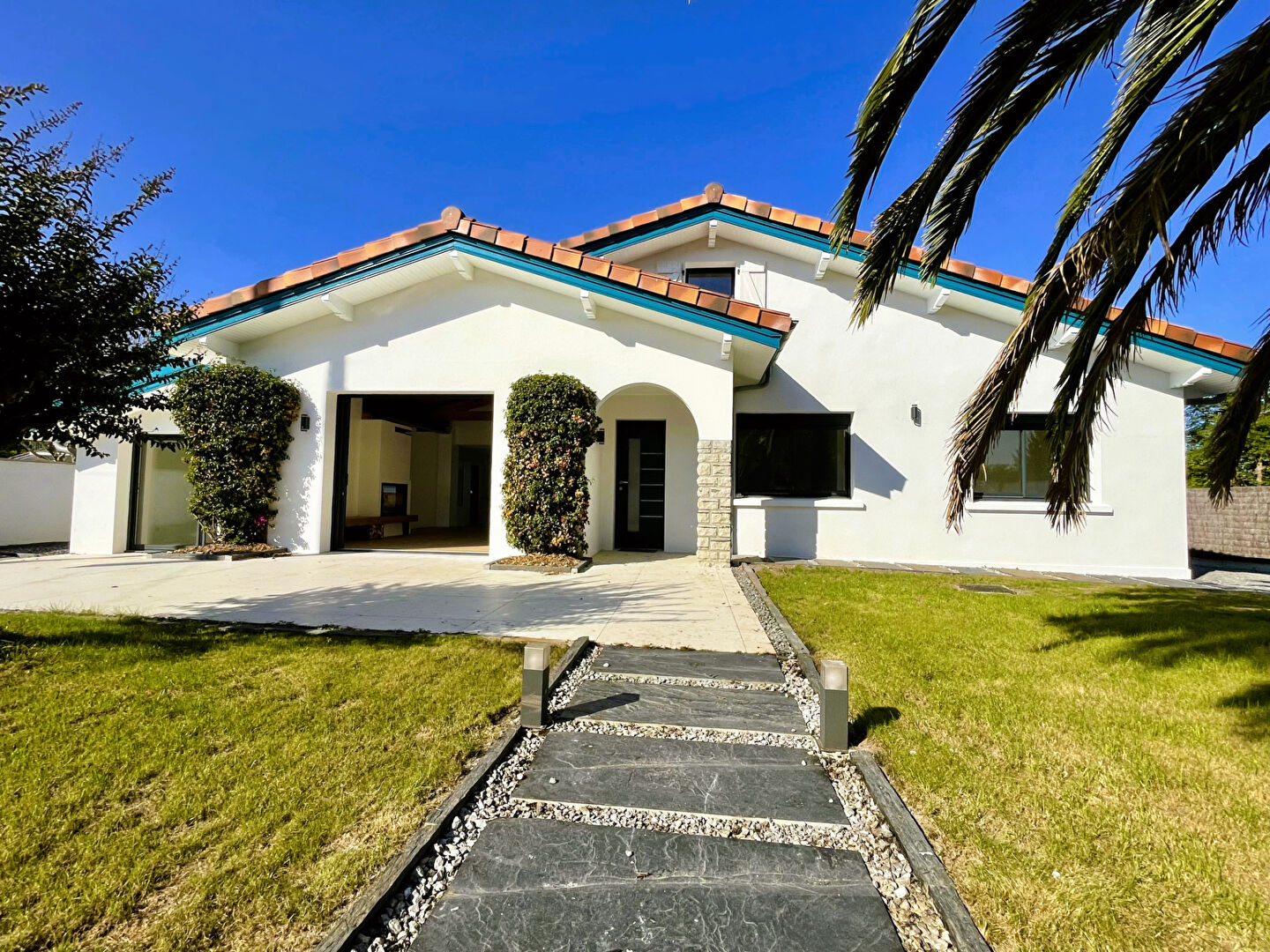 À quelques minutes de Biarritz, dans un environnement calme et recherché, cette belle maison entièrement rénovée offre 165 m² habitables sur une parcelle d'environ 1 000 m².