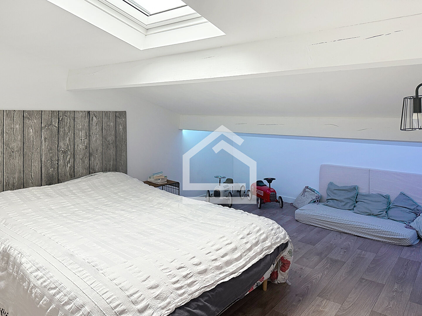 L'étage est utilisé en chambre et bureau ou salle de musique.