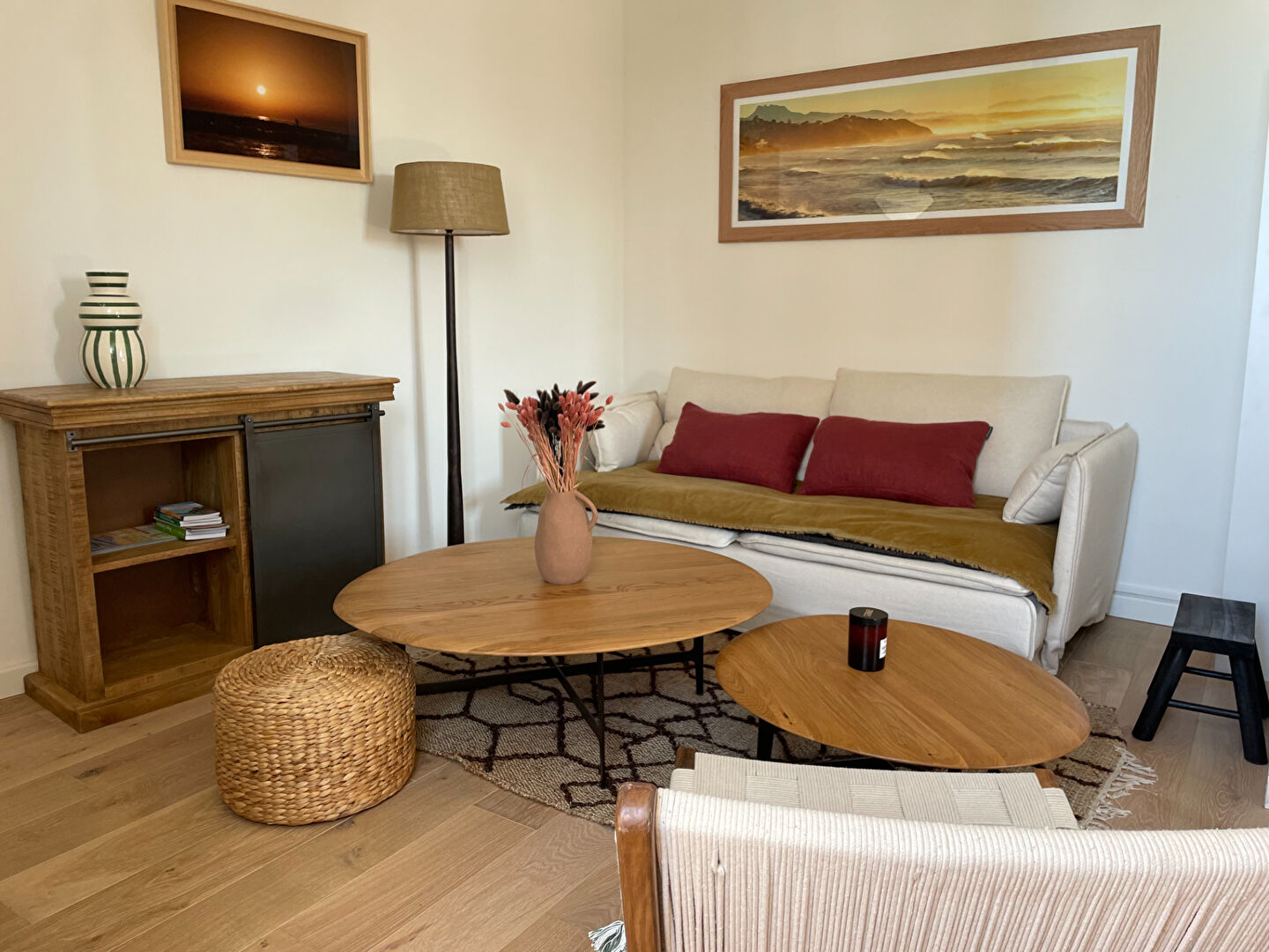 - Séjour et cuisine ouverte, entièrement conçue sur mesure et équipée, sur aperçu océan,