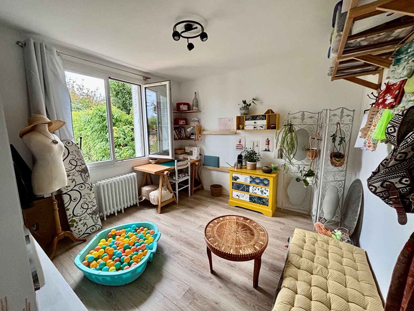 De plain pied, vous profiterez d'un espace de vie lumineux avec cuisine ouverte sur le salon, 3 chambres, une salle de bains, un WC, une buanderie ainsi qu'un agréable jardin clos et sans vis à vis.