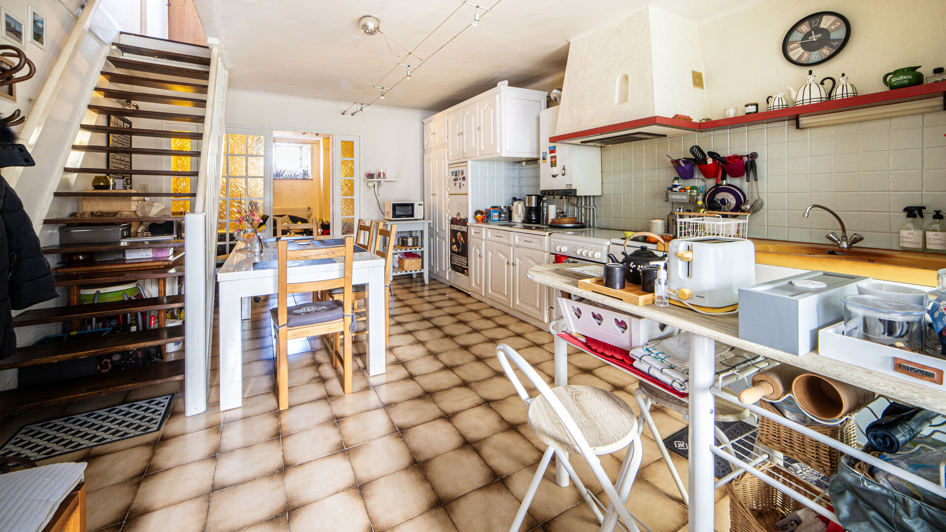 Nichée sur une parcelle de 126m², exposée sud-est et sans vis-à-vis, cette maison de qualité offre, au rez-de-chaussée, une entrée, une pièce de vie avec cuisine ouverte, un séjour et une salle d'eau avec WC. A l'étage, un palier dessert deux chambres. Un espace jardin et deux caveaux aménageables complètent ce bien.