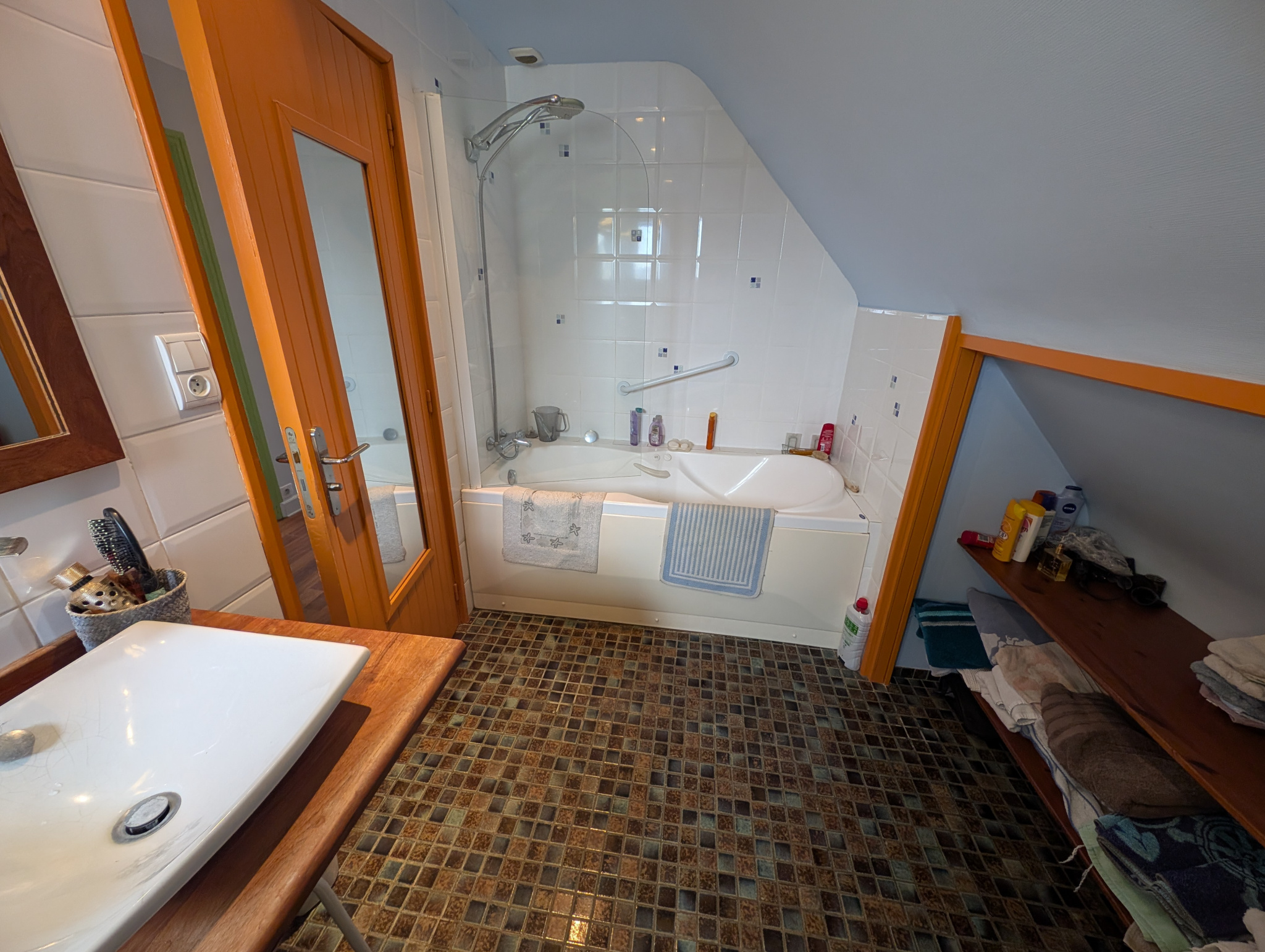 A l'étage, trois chambres, un bureau, salle de bain et WC.