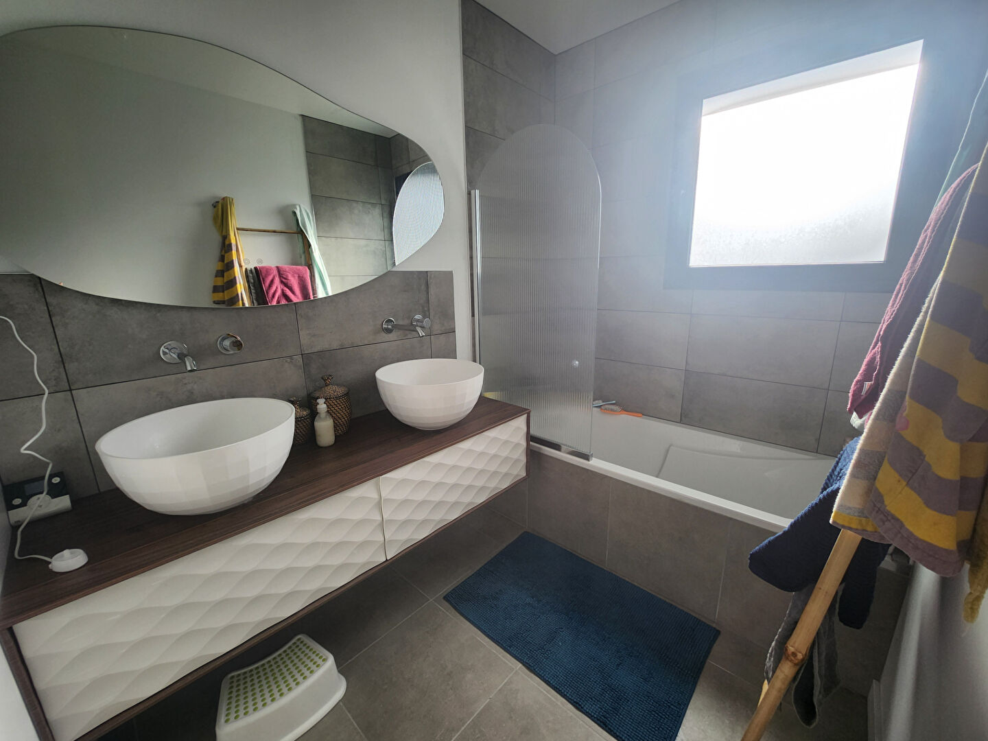 A l'étage, le palier dessert trois chambres et une salle de bains avec WC.