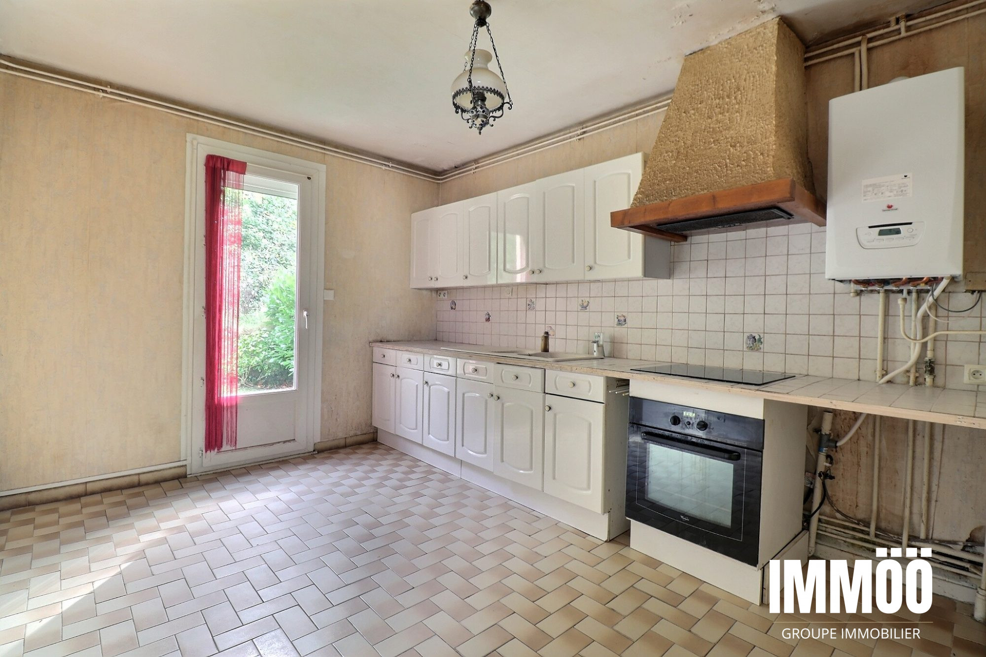Une cuisine équipée et aménagée, avec accès direct au jardin.
