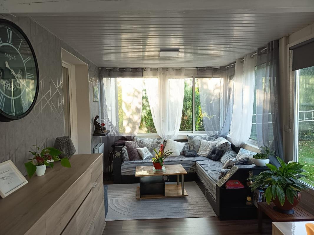 La pièce de vie traversante s'ouvre sur une belle véranda chauffée qui prolonge la maison et qui donne sur le magnifique jardin, la piscine, le Spa et le boulodrome.