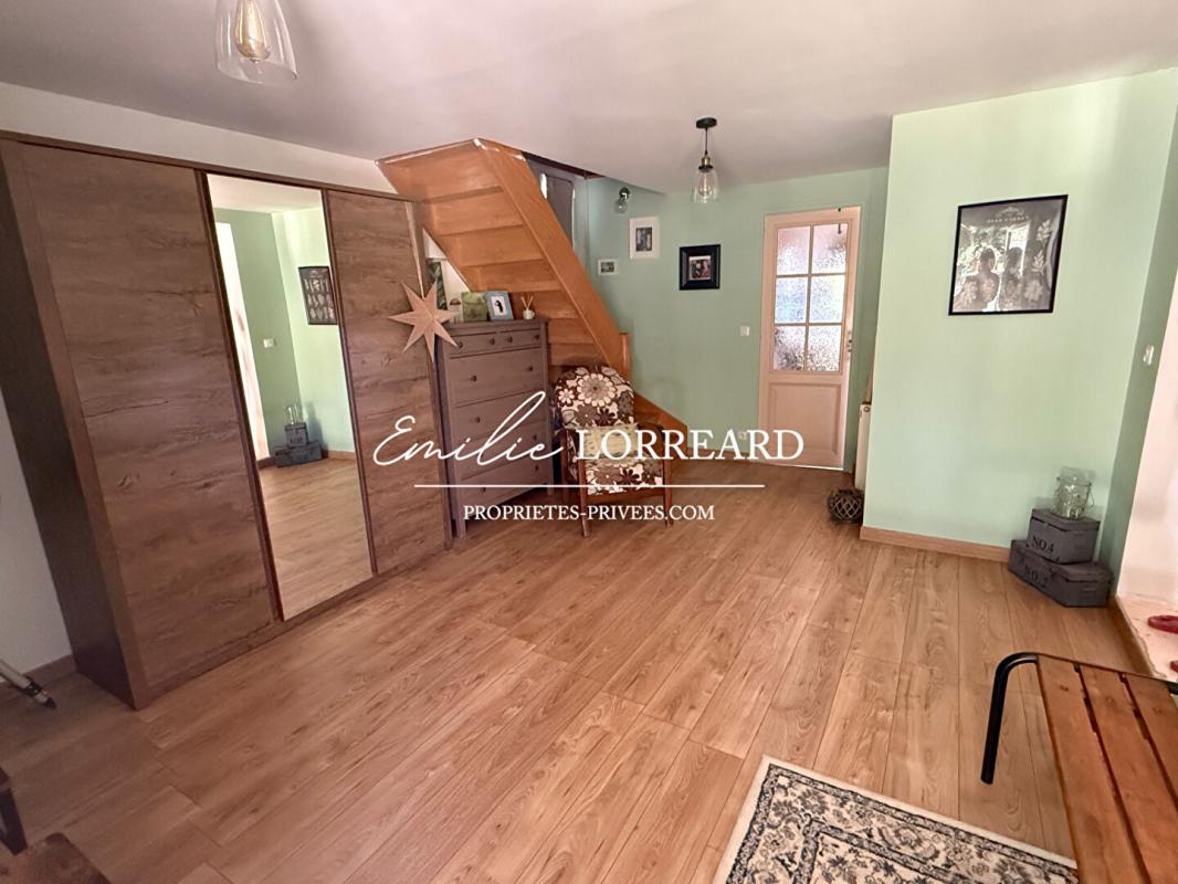 Elle propose une grande entrée desservant le salon-séjour équipé d'un poêle à bois, cuisine ouverte aménagée, 3 chambres au rez-de-chaussée pour un confort de plain-pied, salle d'eau, salle de bain et 2 wc indépendants.