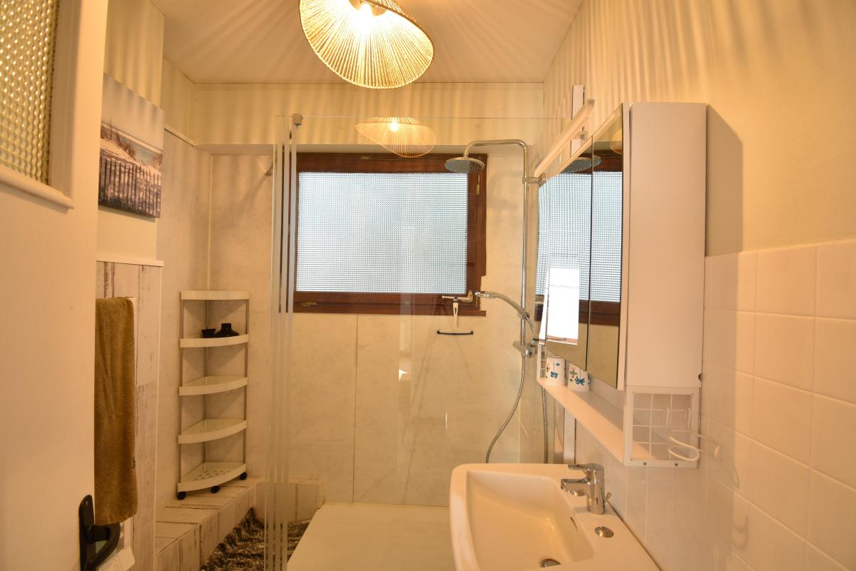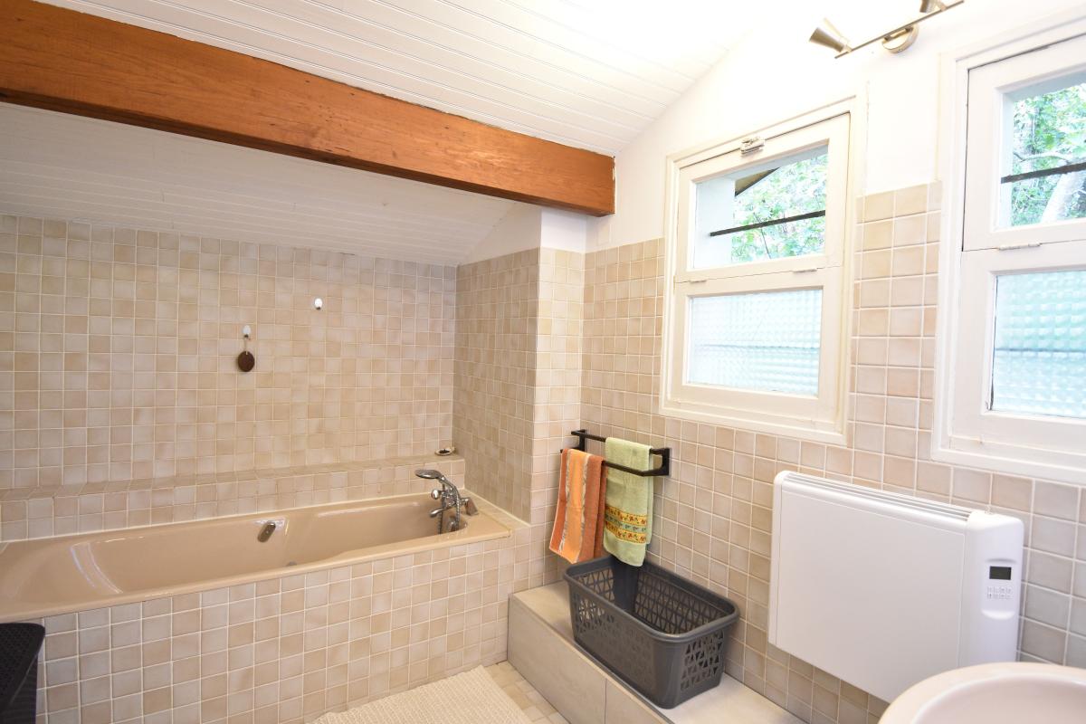 Baignée de lumière, la villa s'ouvre au rez-de-chaussée sur un séjour chaleureux avec cheminée ouverte, invitant à la convivialité, une cuisine aménagée, une chambre, ainsi qu'une salle d'eau avec WC.
