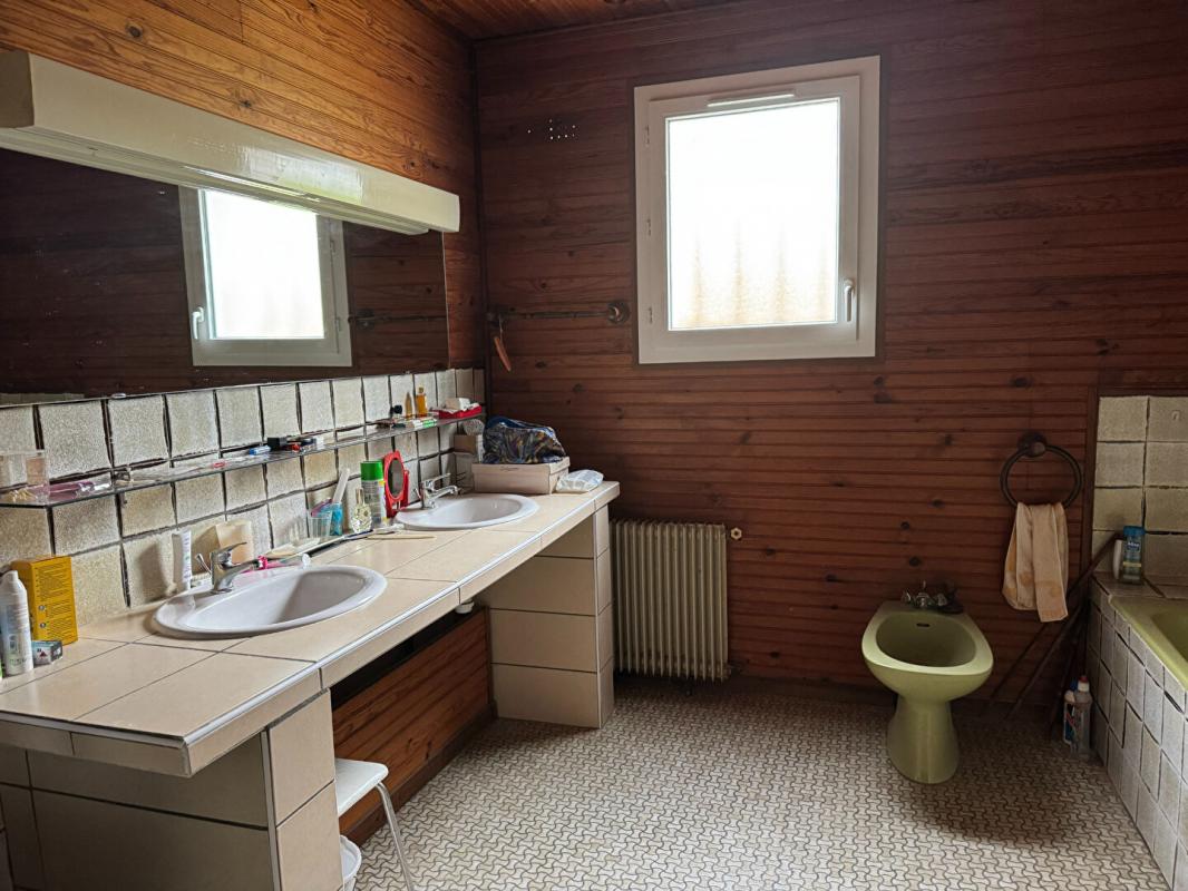 La maison est composée en rez de chaussée d'une entrée dégagement , d'une cuisine indépendante aménagée, d'un cellier, d'une grande lingerie, d'une salle à manger salon avec cheminée, deux chambres, WC, salle de bains avec douche et à l'étage d'un palier, deux chambres, d'une vaste salle de jeux et d'un débarras.