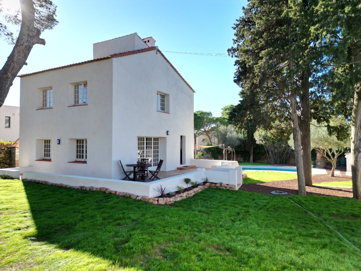 Côté jardin : jardin plat et clos avec des arbres centenaires, la piscine a été entièrement rénovée ainsi que la façade, un abri de jardin est aménagé en chambre d'été