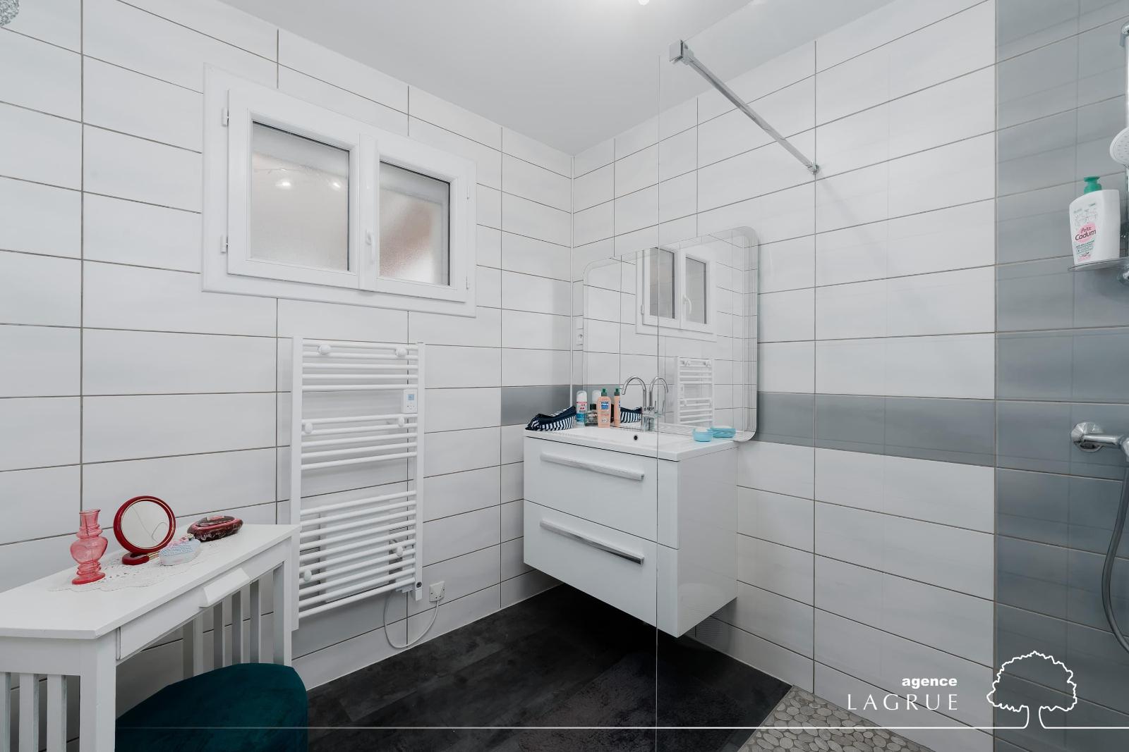 D'une surface habitable de 140 m², elle se compose au rez-de-chaussée : d'une entrée avec placard, d'un séjour ouvert sur une cuisine aménagée et équipée, d'un WC séparé, d'une salle d'eau, de dégagements avec rangements, ainsi que de deux pièces en enfilade (dont une chambre ) donnant sur un balcon.