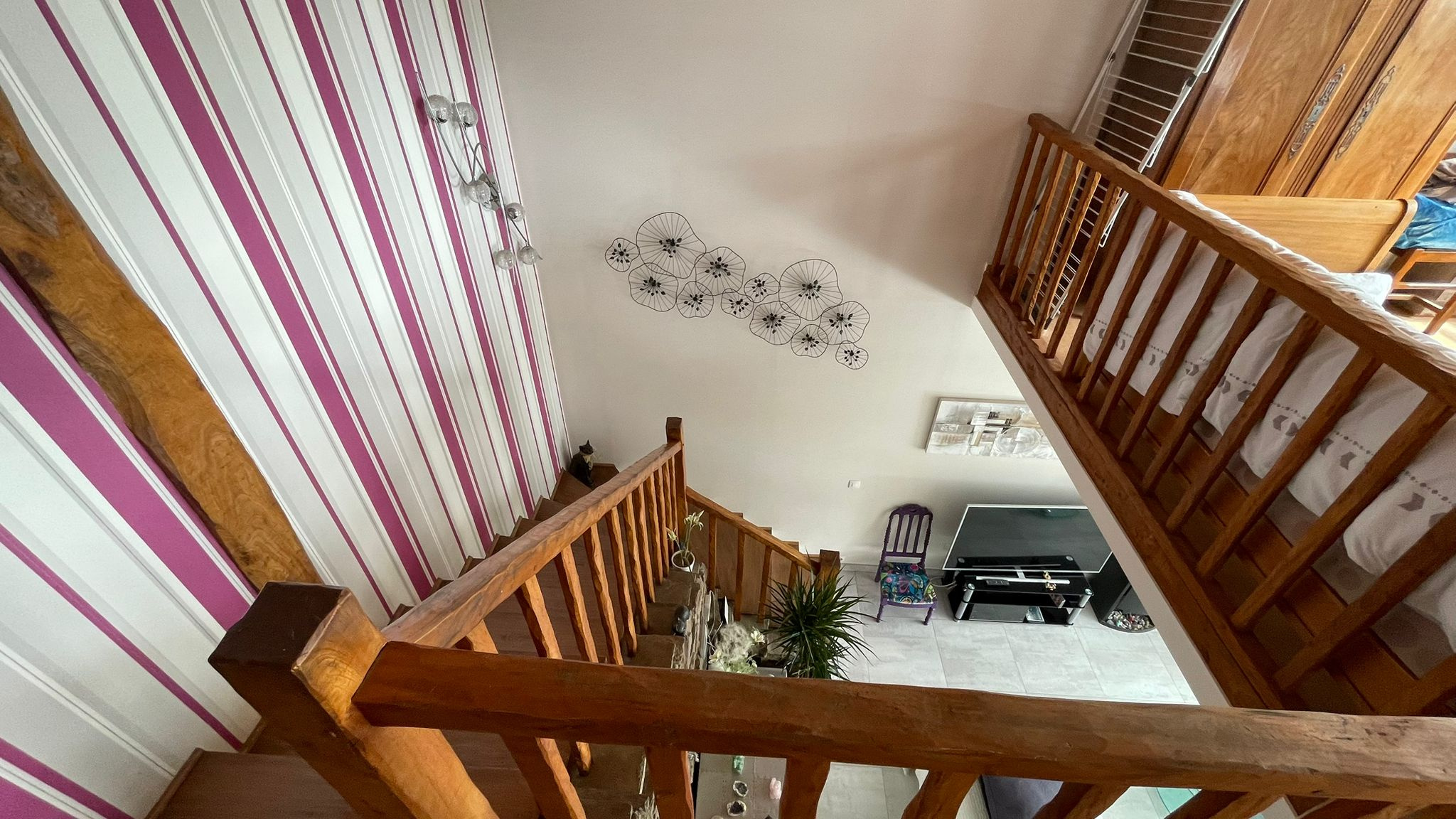 À l'étage : palier avec mezzanine et APERCU MER, quatrième chambre avec sa salle d'eau attenante et son dressing, WC séparés, espace nuit avec dortoir, salle d'eau et placards d'une superficie de 34,17m2 habitable.