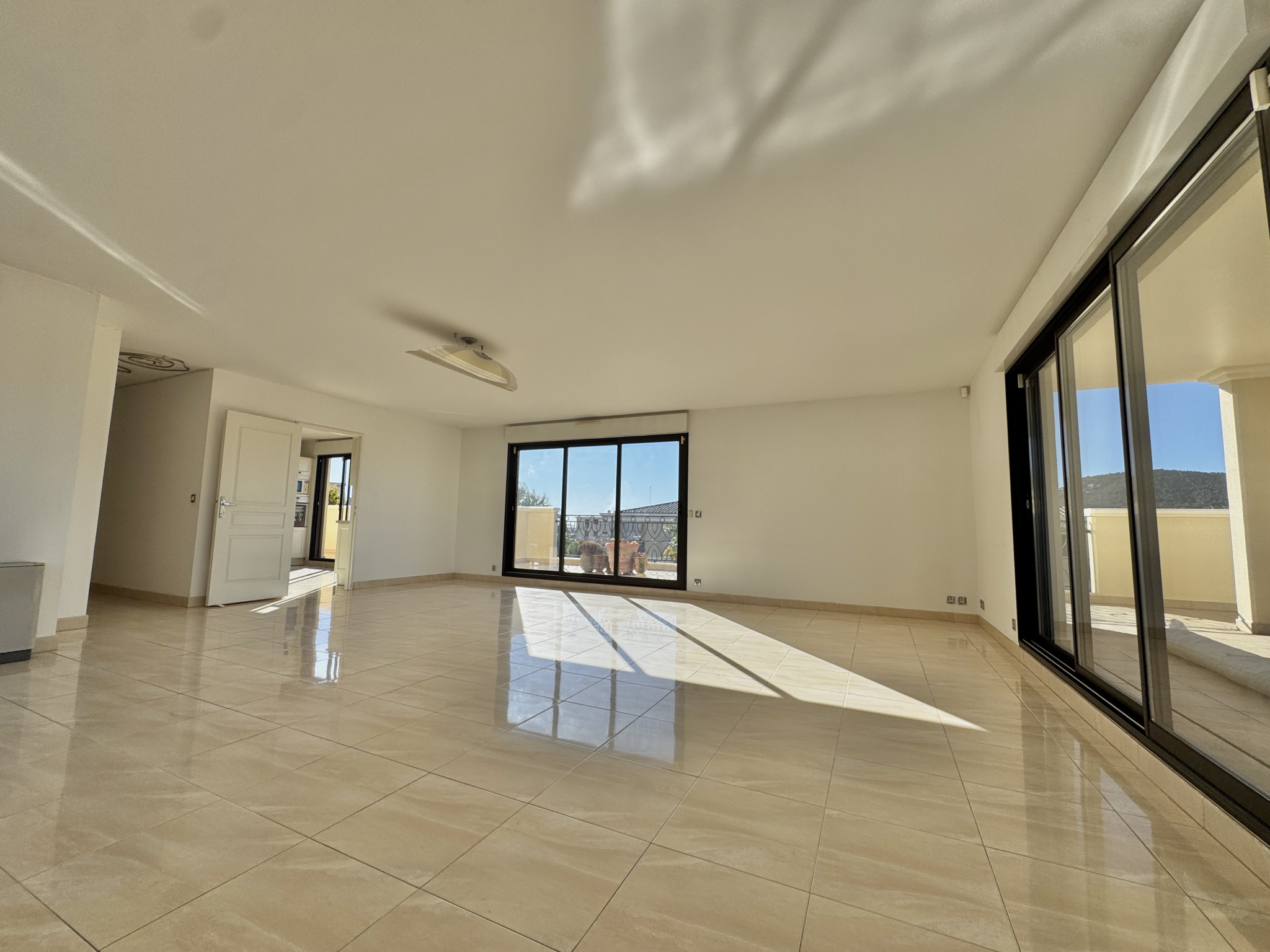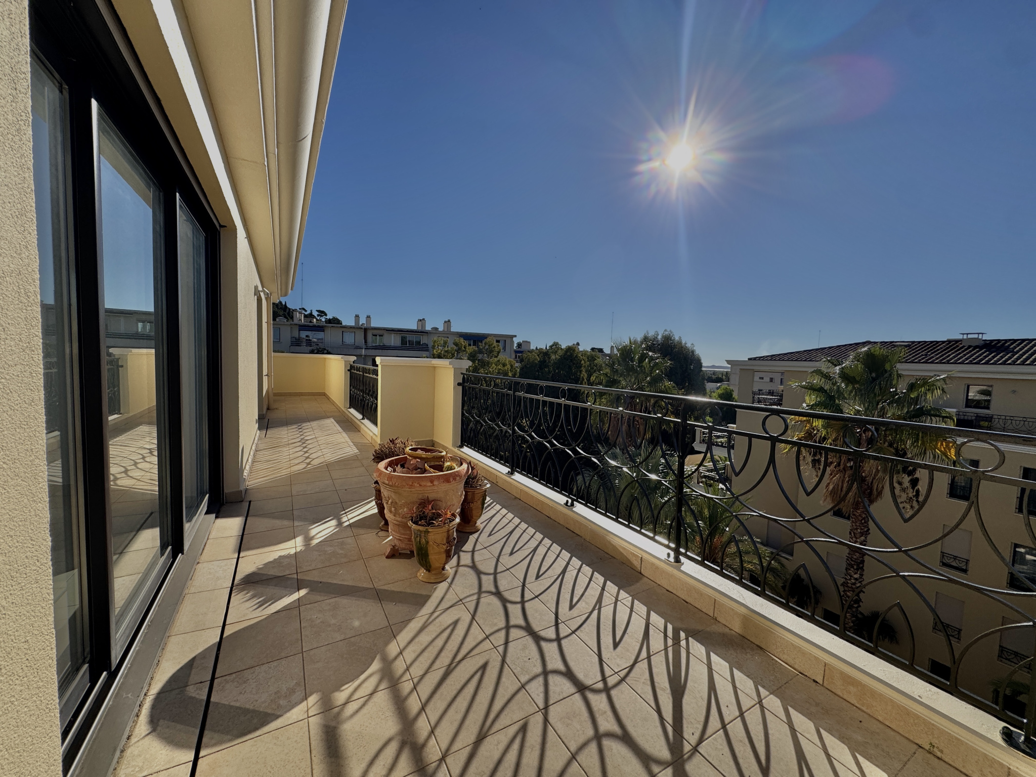 Dans une résidence de très grand standing, en dernier étage, appartement de type 4 de 138.10 m2 offrant un superbe séjour de 48 m2 avec triple exposition et ouvrant sur 149 m2 de terrasses. Il offre un confort et des prestations de grande qualité. Cuisine indépendante équipée, trois chambres dont une suite parentale, 2 WC, cellier et une salle de bains. Double garage en sous-sol. Calme absolu.