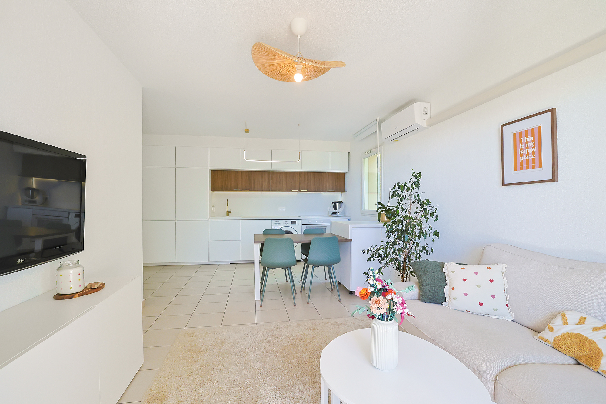 Vous serez séduit par son espace de vie lumineux, ouvert sur une belle terrasse exposée plein sud, offrant un ensoleillement optimal et un cadre de vie paisible. La disposition intérieure, moderne et fonctionnelle, ne nécessite aucun travaux : vous posez vos valises et profitez immédiatement.
