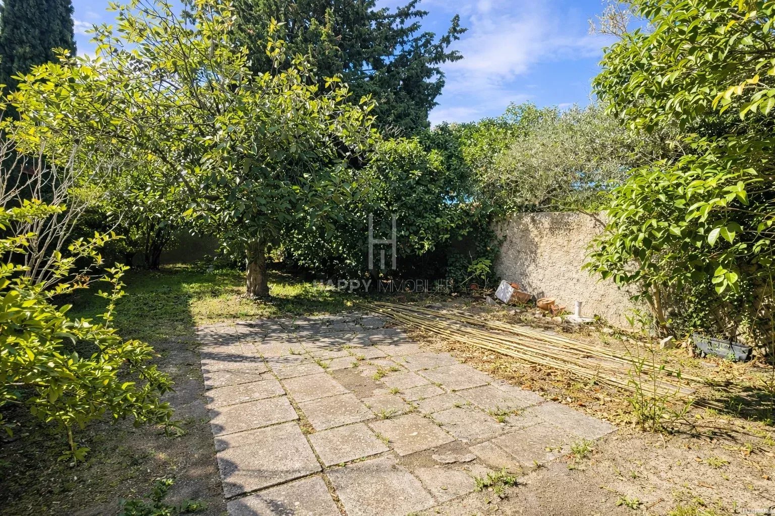 Jardin arboré agréable avec un puit pour arrosage et terrain clos de murs de 675 M2 avec possibilité d'y réaliser une piscine.