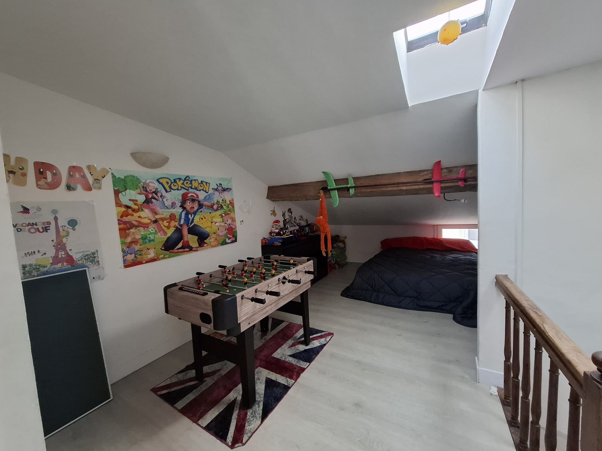 Elle se compose au rez-de-chaussée d'un salon avec cuisine ouverte, menant à une petite cour pleine de charme, ainsi qu'un WC. Au premier étage, trois chambres et une salle d'eau. Le dernier niveau offre un espace polyvalent, idéal comme bureau ou chambre supplémentaire.