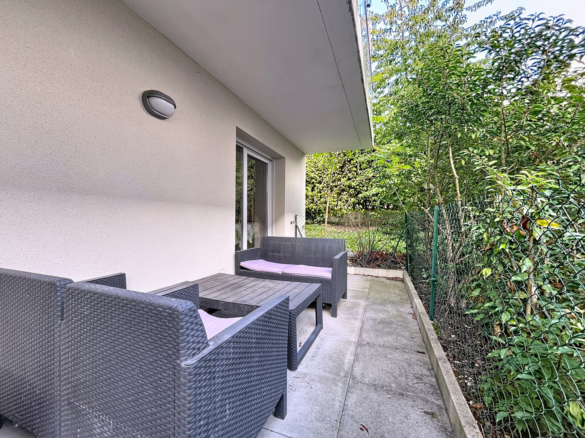 NOUVEAU & EXCLUSIF, Type 2 de 46,60 m2 en rez-de-jardin avec une terrasse de 13,17 m2. Cet appartement de 2016 est composé d'une entrée avec placards, desservant un séjour avec cuisine ouverte aménagée et équipée, une terrasse arborée, une chambre, une salle de bains avec wc.