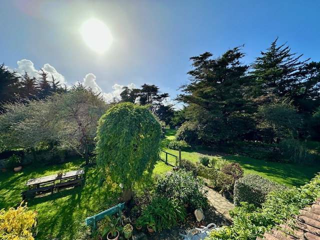 Un grand jardin clos en grande partie de murets en pierre, et un grand appentis en bois aménagé en chambre d'été.