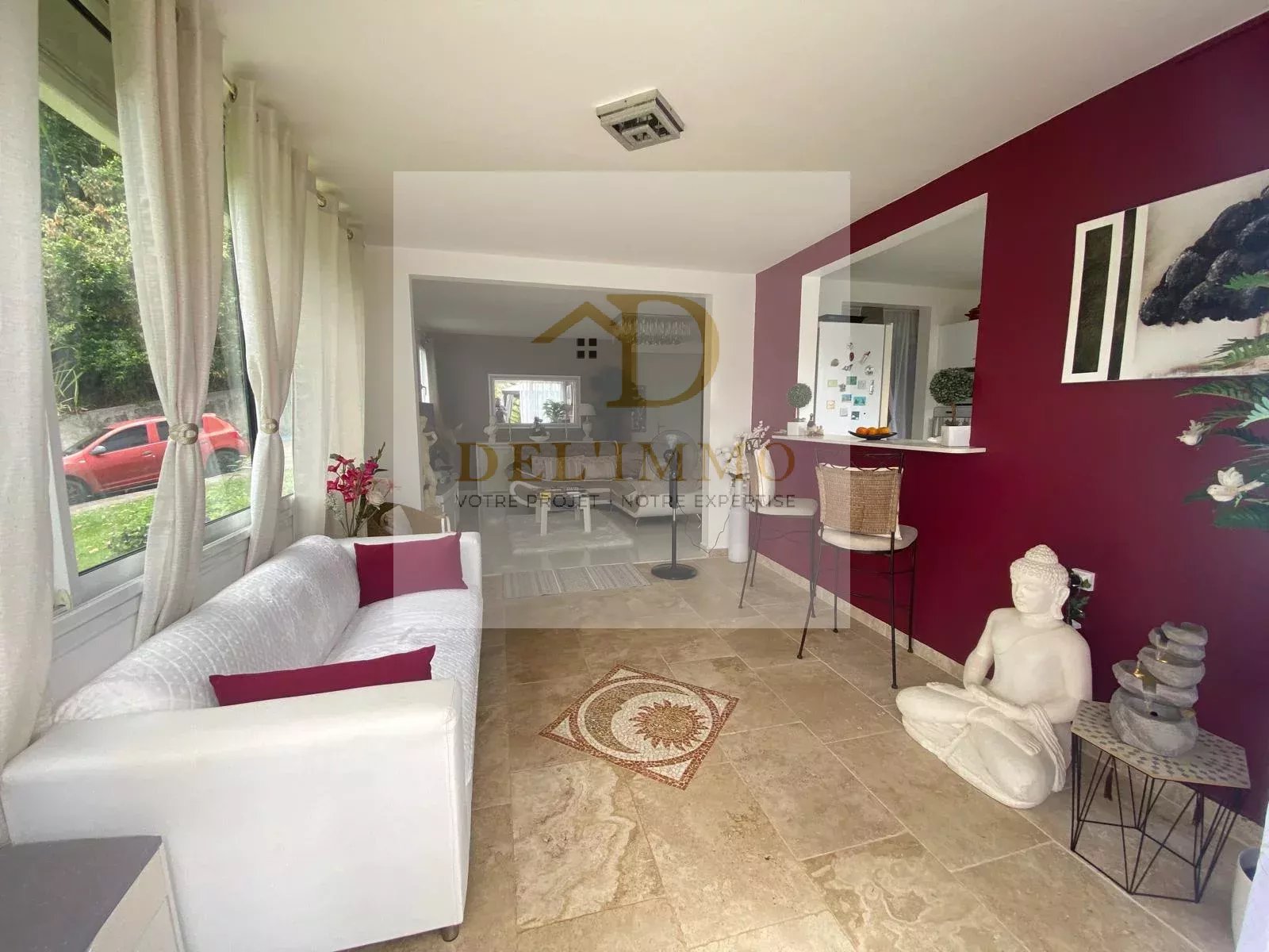 A l'extérieur, profitez d'un véritable havre de paix grâce à une pergola aménagée et un jardin arboré vous invitant à savourer pleinement la vie en plein air dans un cadre apaisant.