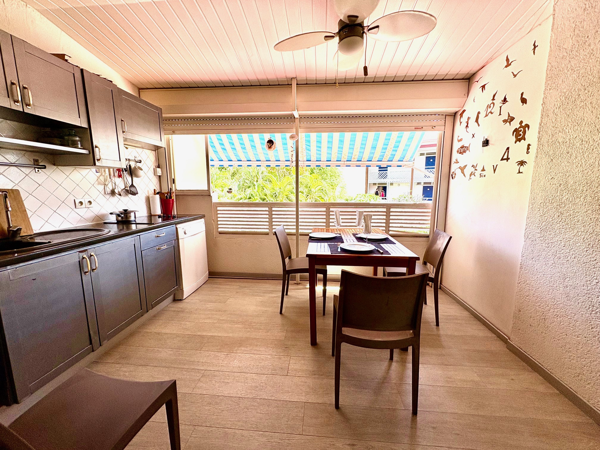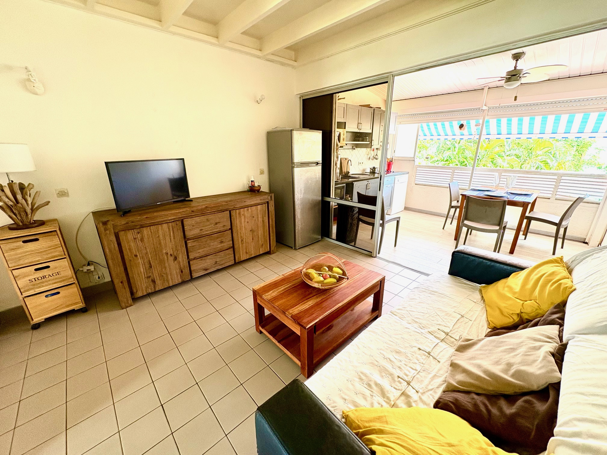 LA MARINA : Appartement duplex T2 meublé de 58 m2 (terrasses comprises) au coeur de la Marina en bordure de quai et face au golf. Composé d'une entrée, 1 salon, 1 cuisine équipée sur grande terrasse fermée par volet roulant, 1 salle d'eau/WC avec Lave-linge ; à l'étage 1 belle chambre volumineuse climatisée avec salle d'eau/WC et 1 terrasse vue golf et bateaux. Pour plus d'informations contacter Laurence CAILLET par WHATSAPP et SMS au +590 690 002 312 ou par SMS au 0690 35 97 18 et par mail : laurence@immo971.com et/ou cailletlo971@gmail.com en laissant vos coordonnées et l'objet de votre appel.