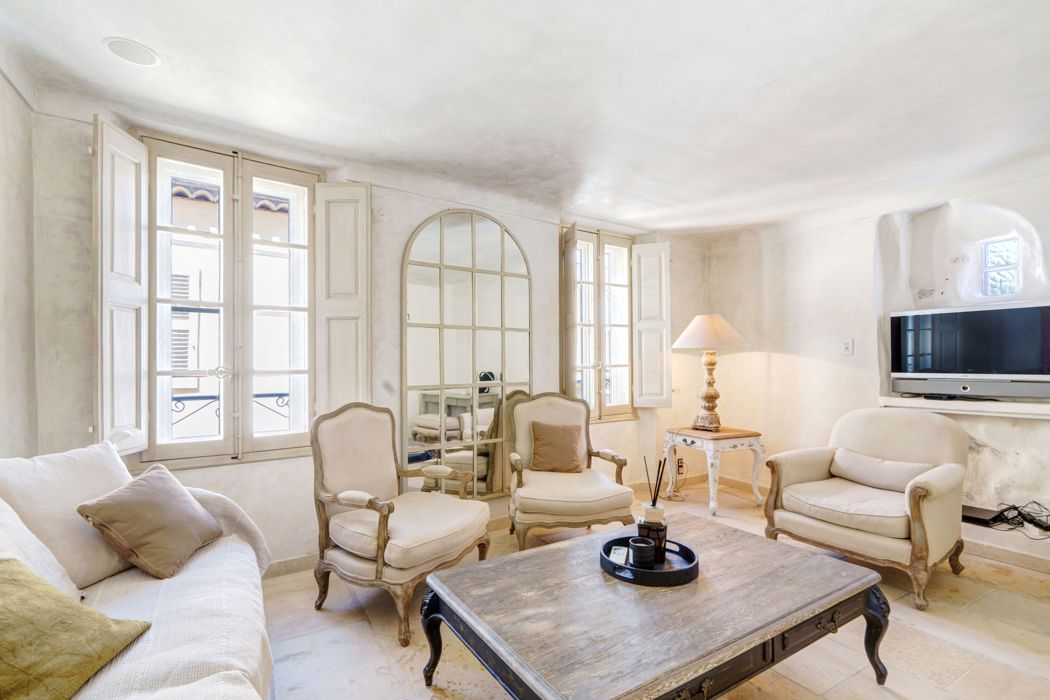 Dans un immeuble typiquement tropézien et à 50 m du port et de la Place des Lices, maison d'angle se composant :