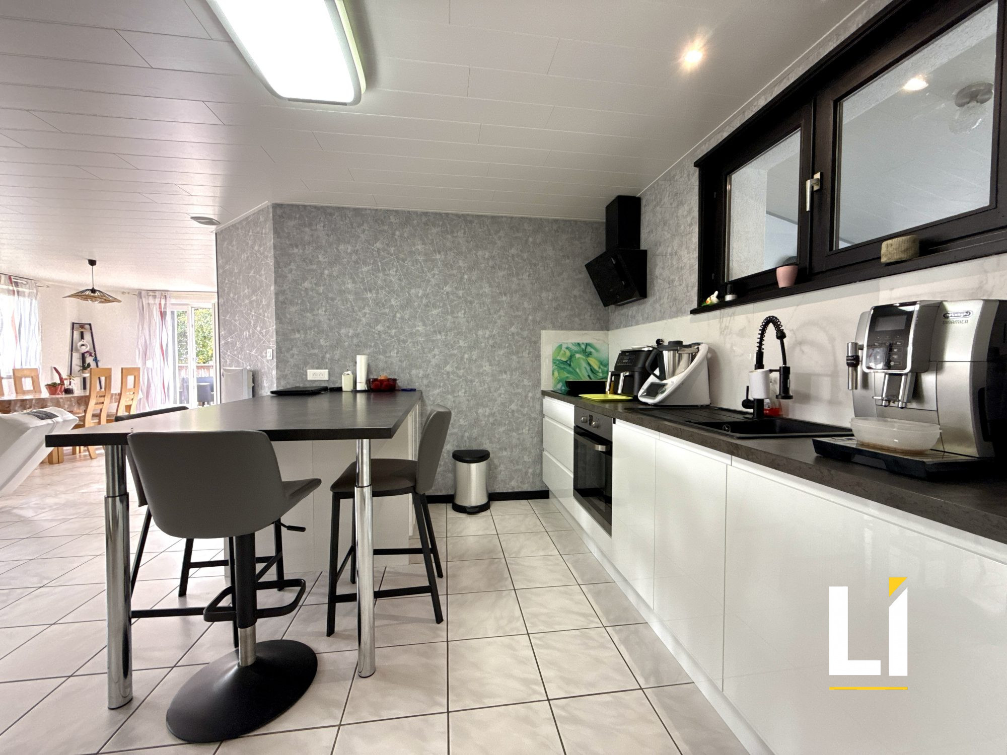 Son entrée indépendante donne accès à un grand dégagement, puis à une cuisine toute équipée, ouverte sur un salon-séjour avec un insert bois. Cette pièce, lumineuse et bien exposée, donne un accès direct à une grande terrasse, qui, elle, profite d'un accès au grand terrain privatif.