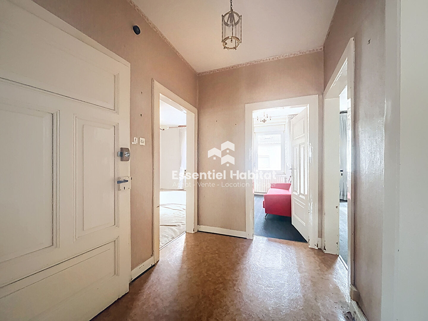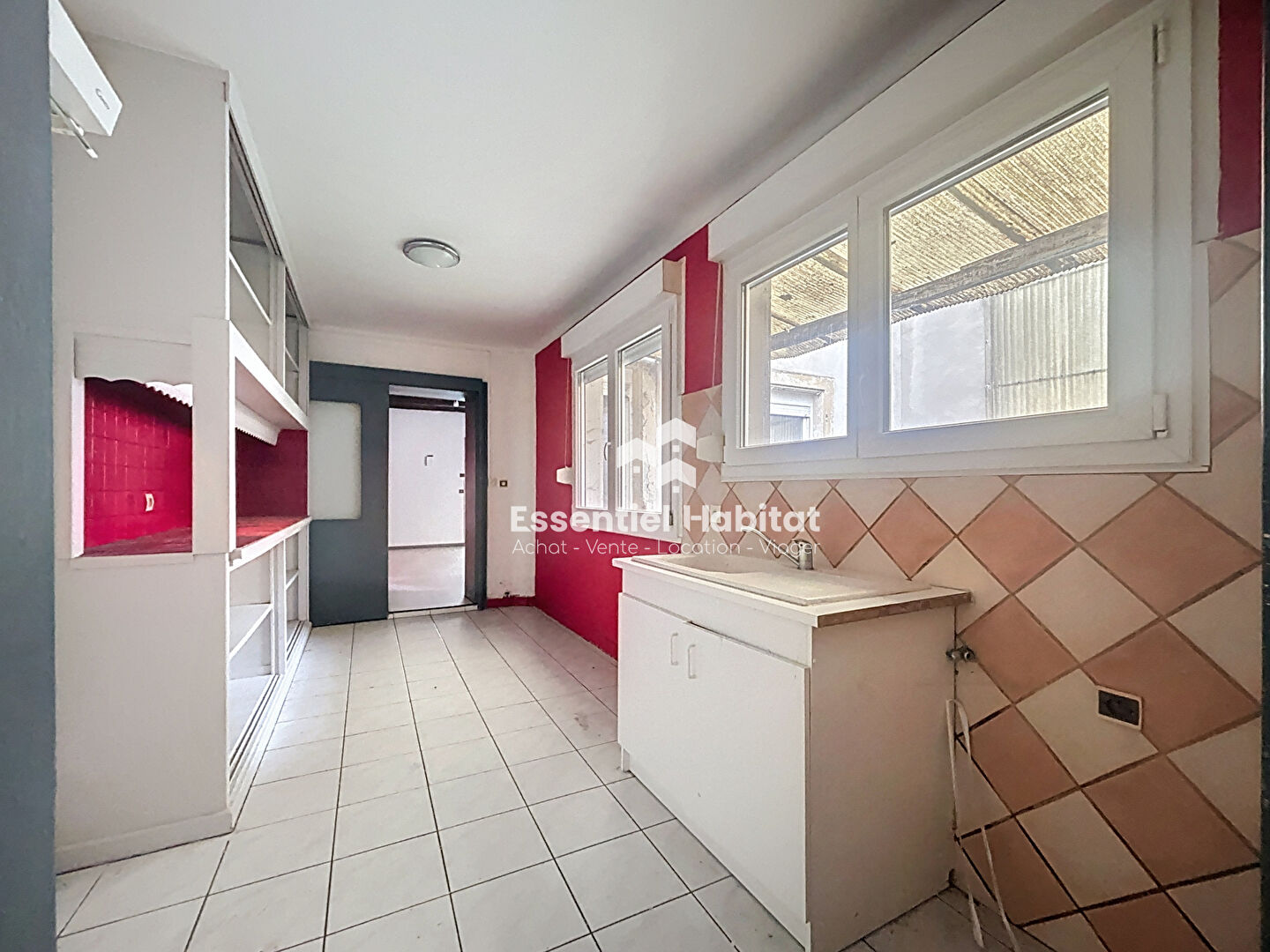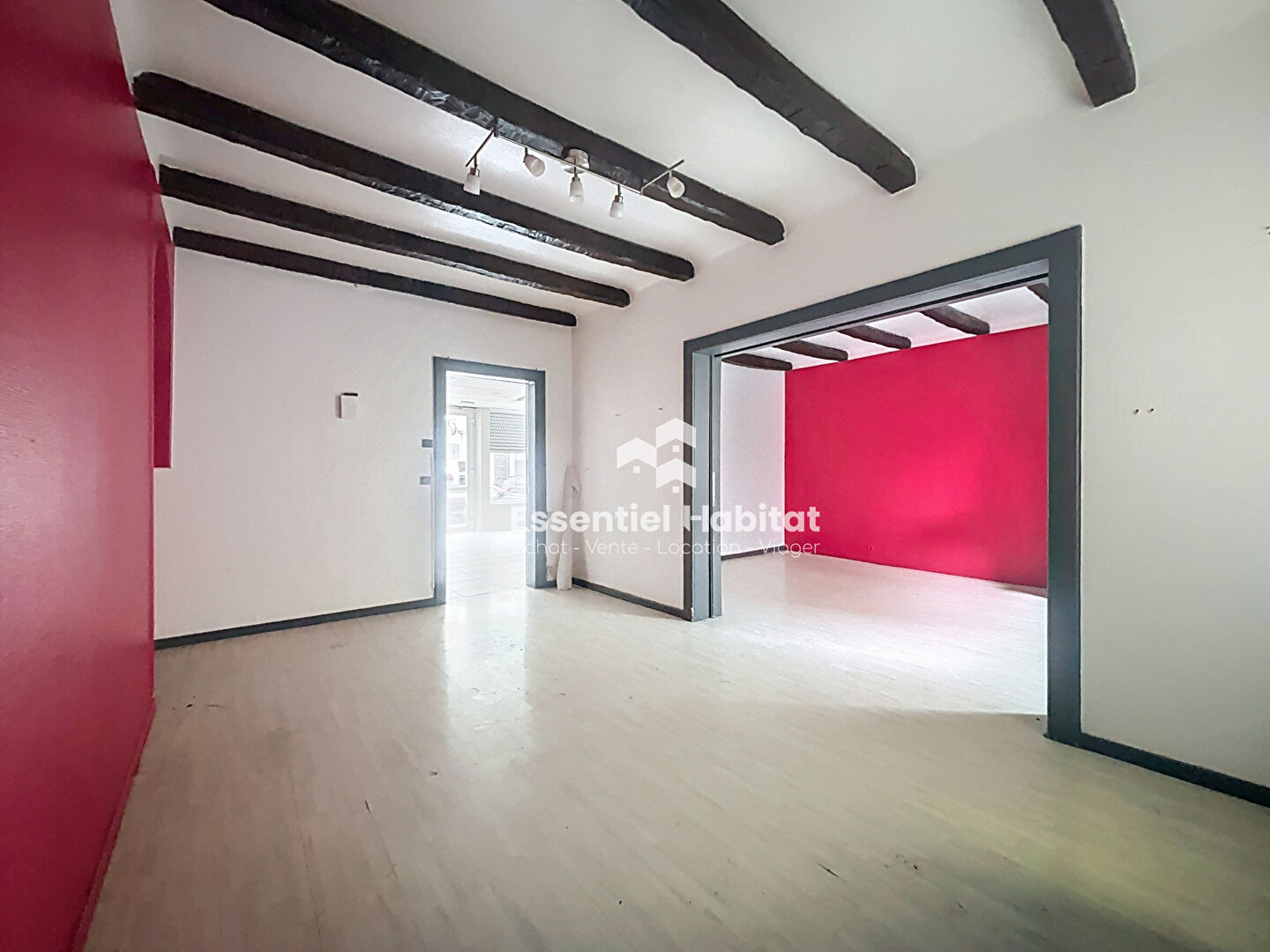 Au 1er étage, un palier dessert un appartement de type F4 d'une surface habitable de 79m² composé d'une entrée, desservant un salon, un bureau, deux chambres, une cuisine et une salle d'eau avec wc.
