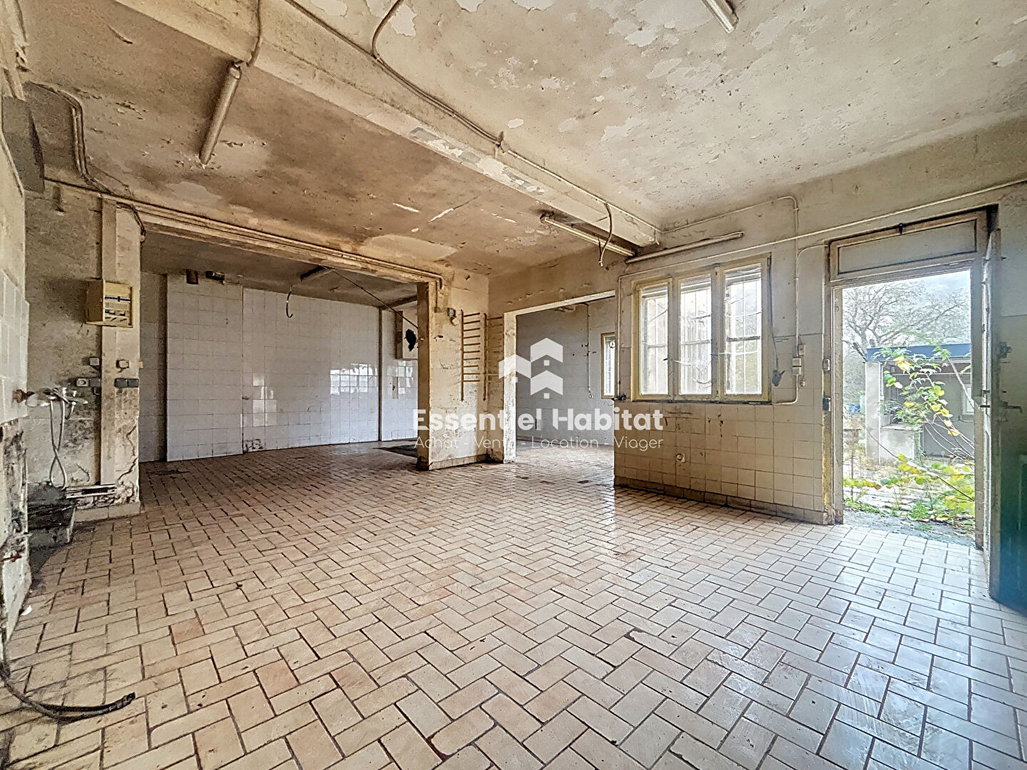 Au rez-de-chaussée, un local commercial de 34,51 m² avec entrée indépendante en façade, un salon - salle à manger, une cuisine et une salle de bains avec wc attenants (possibilité de créer un logement type F3 de 85m²). Au bout du couloir, un laboratoire avec point d'eau de 86m² permet d'envisager la création d'un second logement avec mezzanine et donnant l'accès au jardin, à la cour intérieure et aux caves.