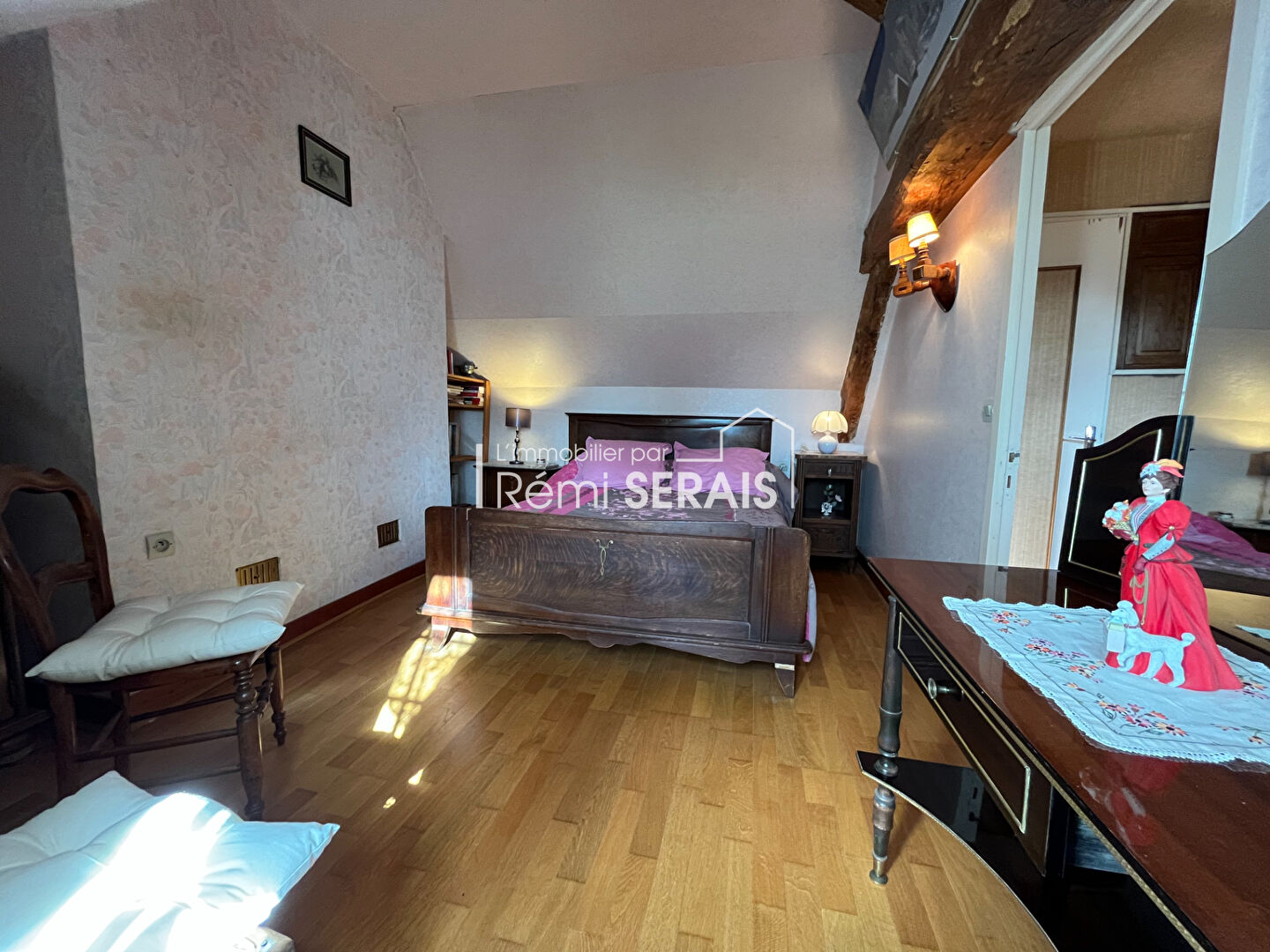 A l'étage, un palier dessert actuellement 3 chambres dont 2 petites pouvant être transformées en une grande ainsi qu'un point d'eau.