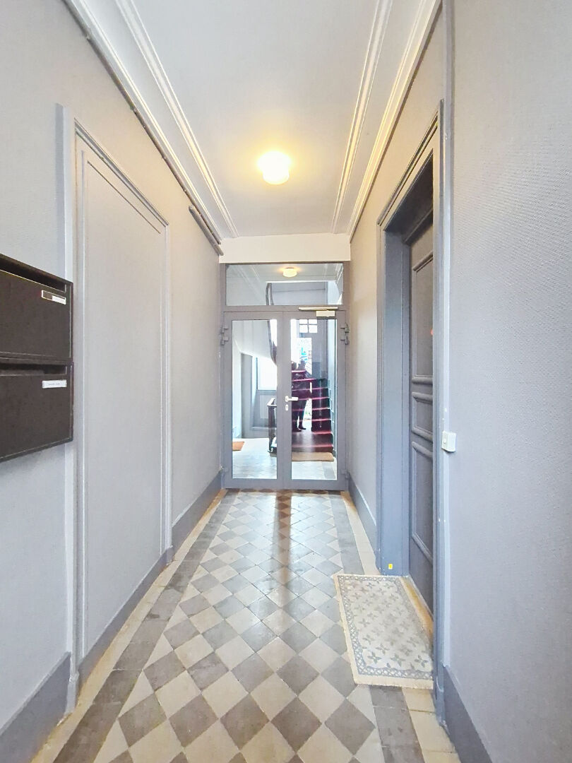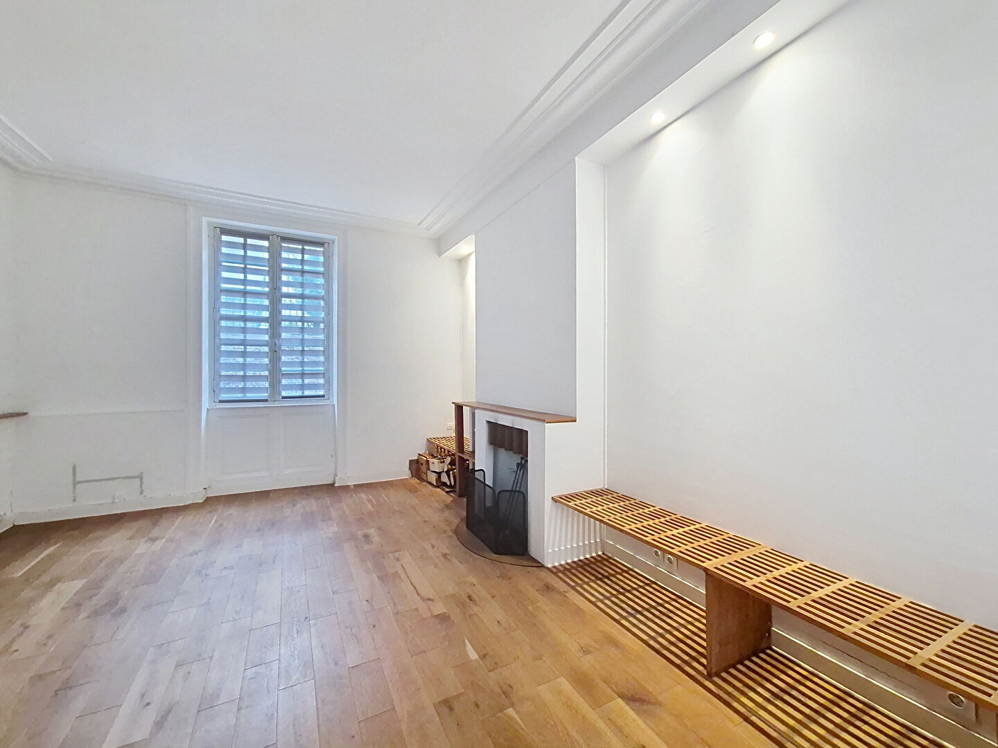 D'une surface au sol de 33,14 m² (surface Carrez de 27,83 m²), cet appartement offre une belle pièce de vie dotée d'une hauteur sous plafond remarquable, de moulures élégantes et de briques rouges apparentes, lui conférant un style à la fois authentique et atypique.