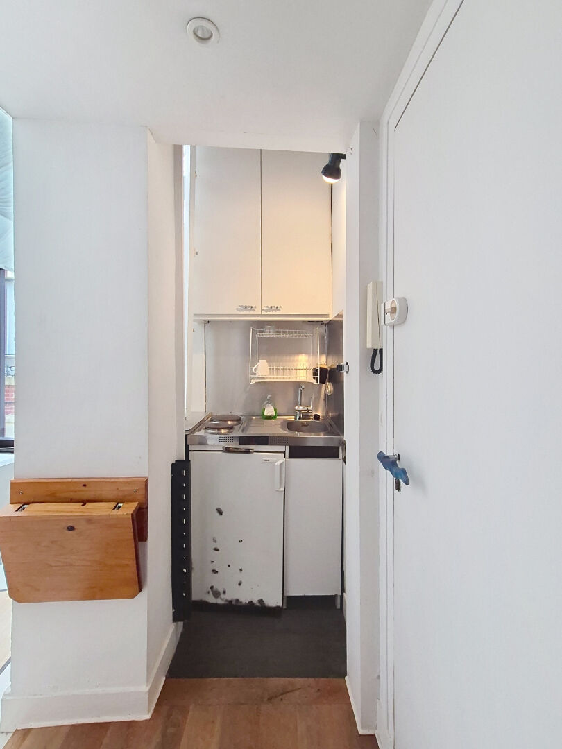 L'espace comprend une pièce principale lumineuse, une penderie, ainsi qu'une salle de douche avec WC.
