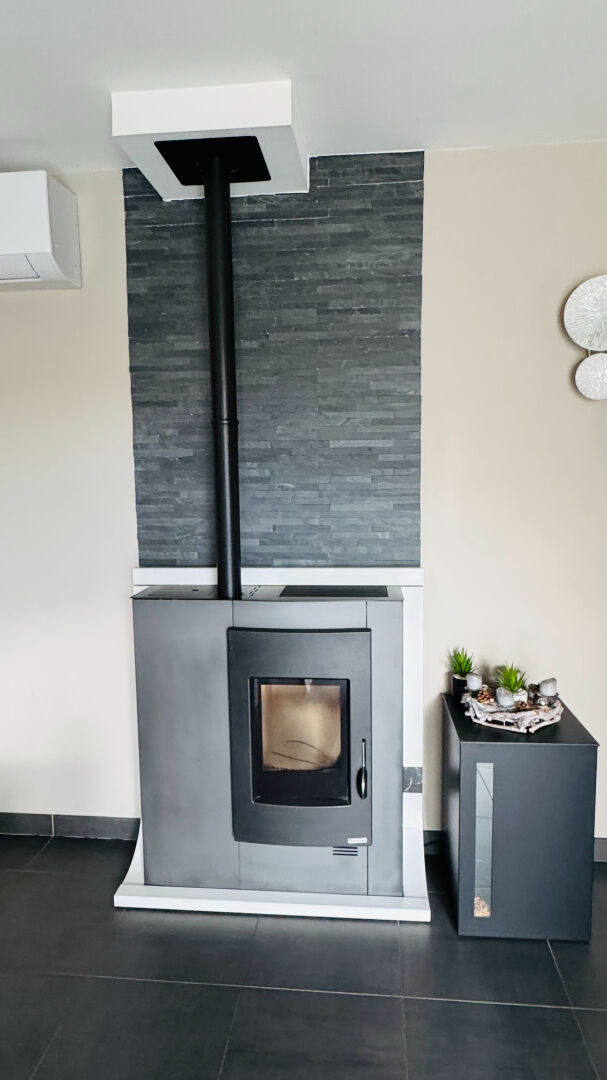 Dès l'entrée vous accédez à la pièce de vie agrémentée d'un poêle à bois, sa cuisine aménagée et équipée et un vaste salon avec espace bureau fermé par verrière, le tout avec accès direct sur la terrasse.