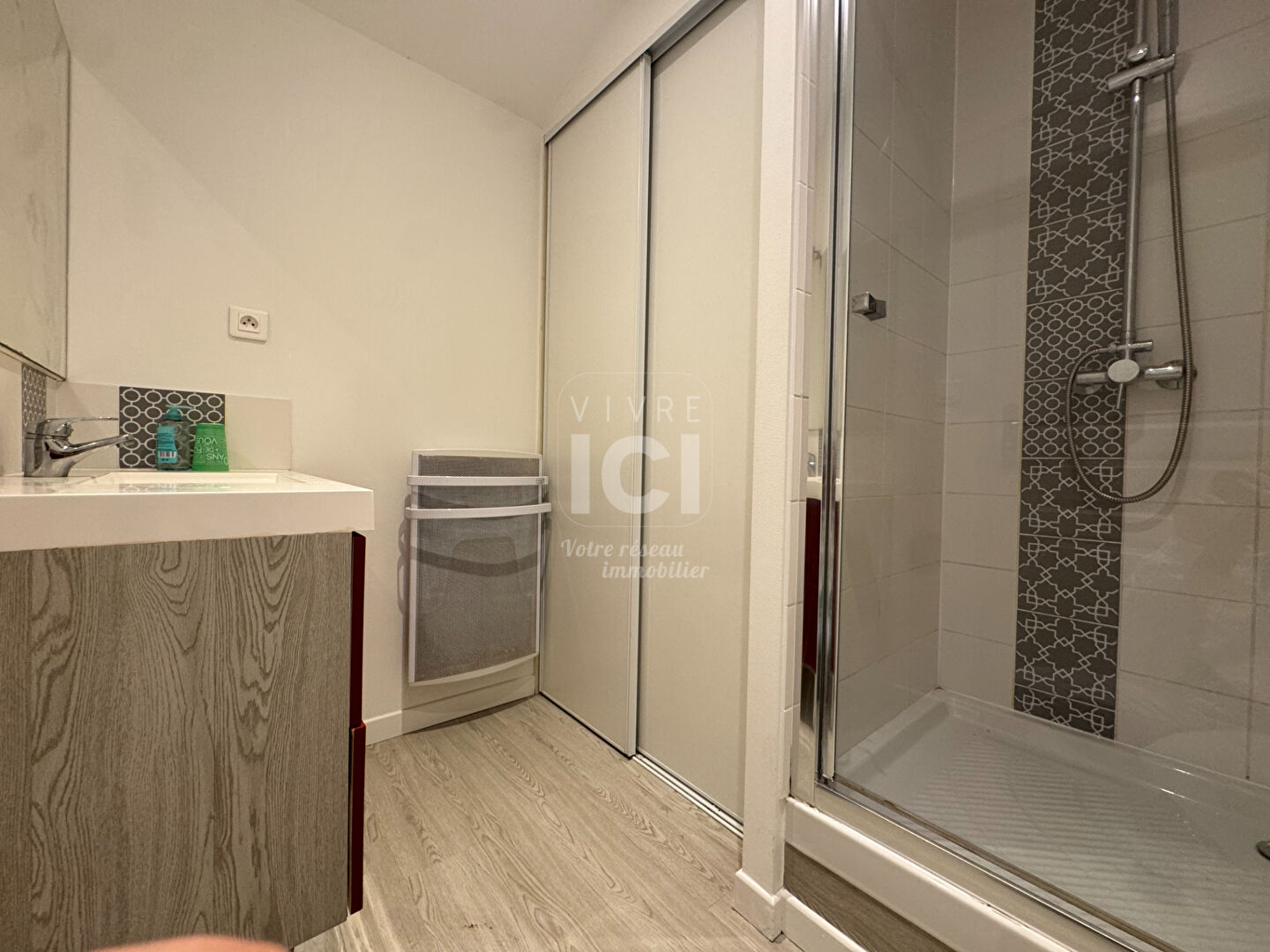 Elle se compose d'une pièce de vie avec une cuisine aménagée et équipée, d'un dégagement desservant une chambre avec un placard, une salle d'eau avec un coin machine à laver ainsi qu'un WC.