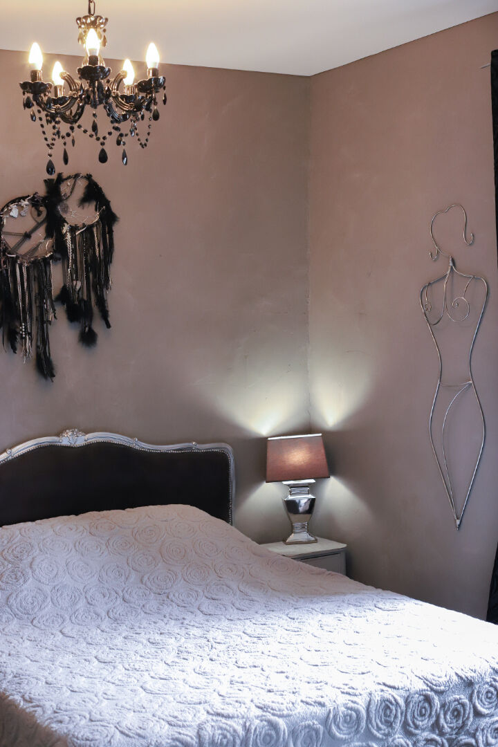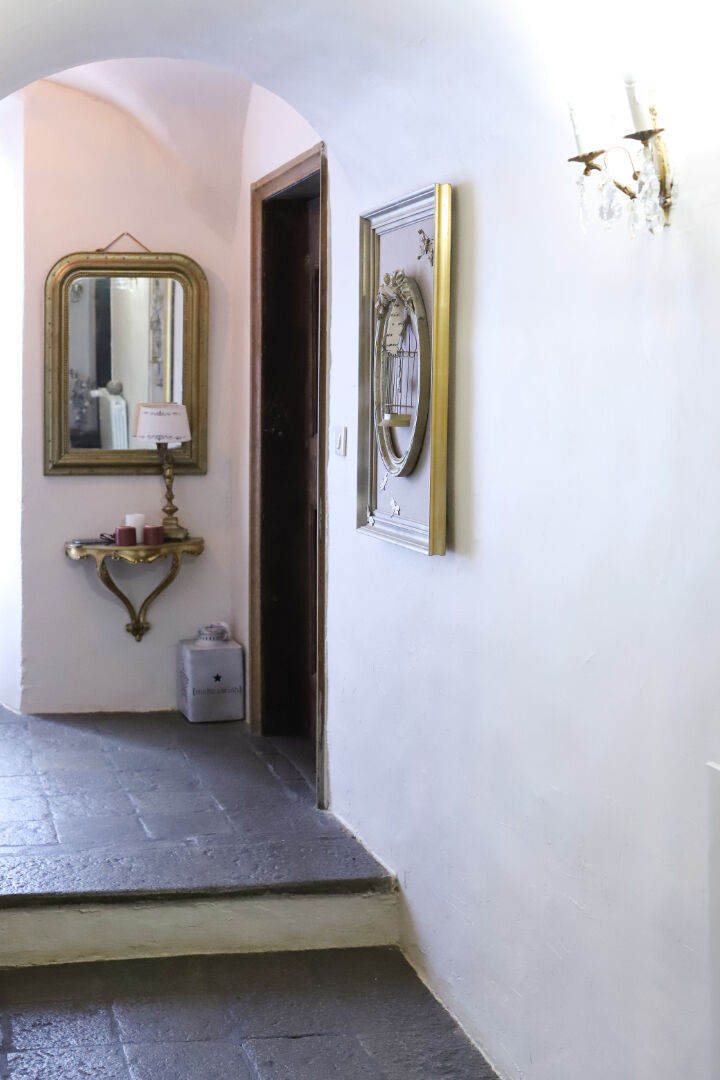 Les 3 niveaux supérieurs sont composés de 5 suites somptueuses avec boudoir, parquet et porte en bois de châtaignier, équipée de lit double, boudoir, un salon pour la toilette avec douche, la décoration d'intérieur apporte une authenticité douce et harmonieuse.