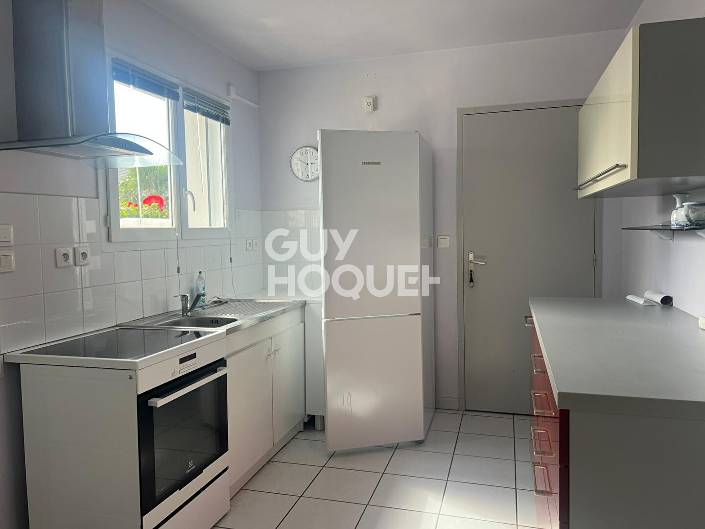 Une pièce de vie lumineuse avec cuisine contemporaine ouverte, aménagée et équipée