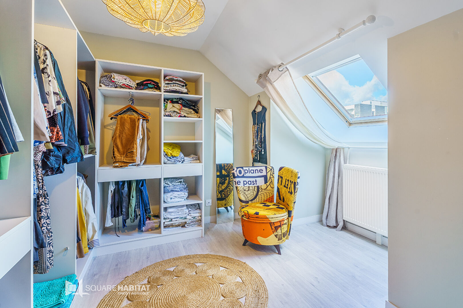 À l'étage, un palier dessert trois belles chambres dont une, aménagée avec soin en dressing sur mesure. Une vaste salle de bains avec WC complète ce niveau, apportant confort et praticité au quotidien.