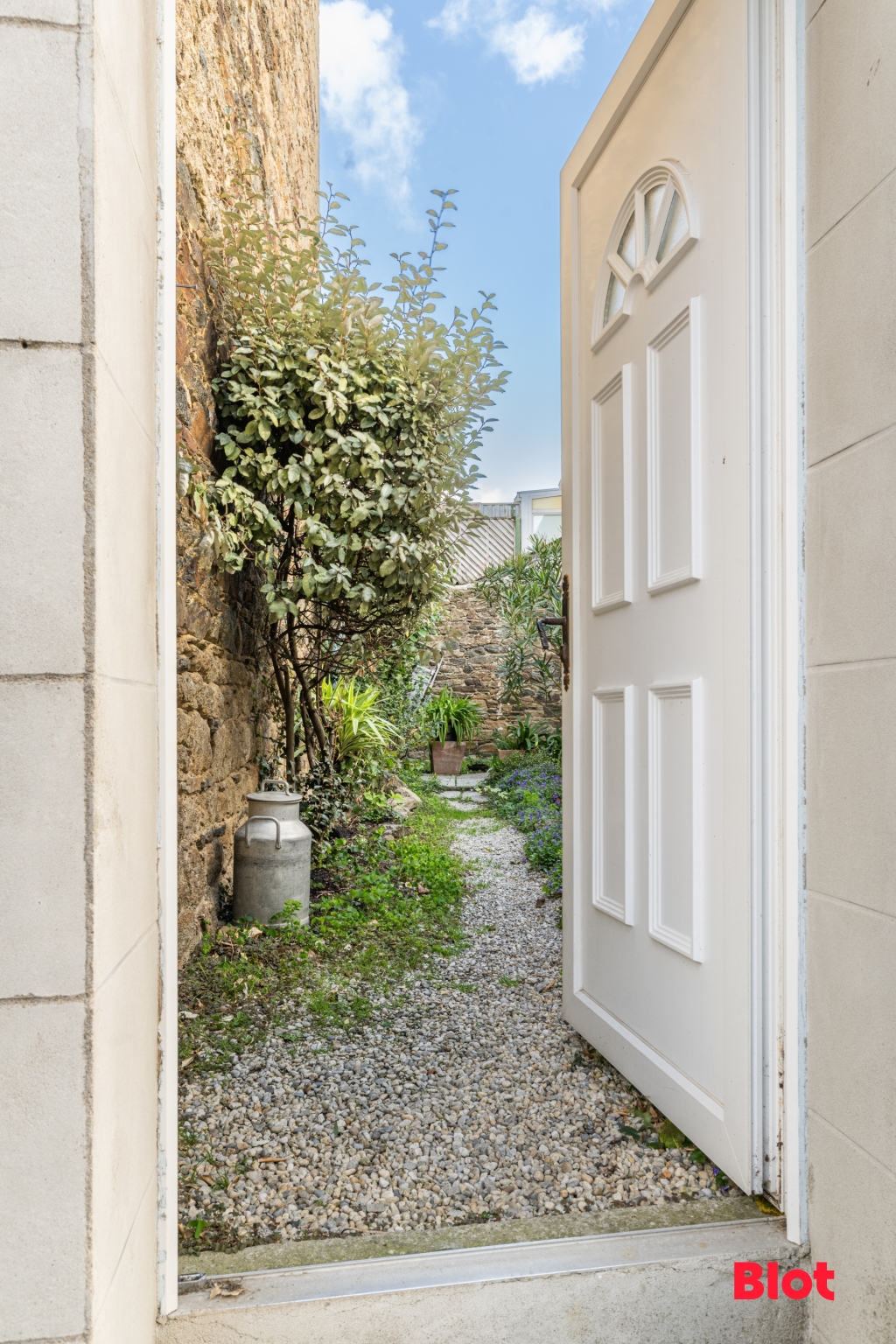En poussant la porte de façade de ce bâtiment, découvrez un charmant passage privatif donnant sur une petite cour avec cabanon, permettant de profiter d'un extérieur en toute intimité.