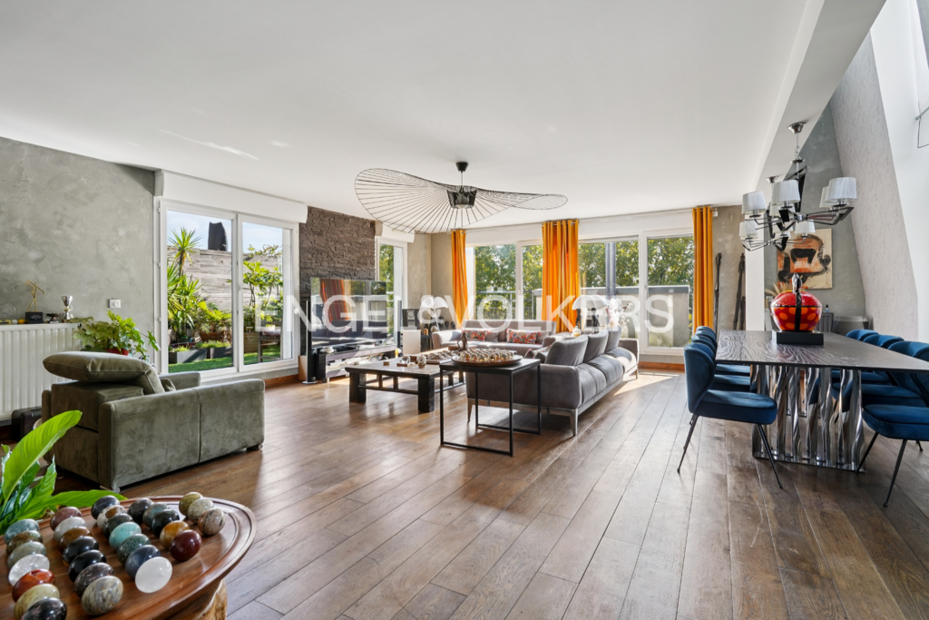 Aux portes de Paris, proche des quais de Seine, situé au dernier étage d'une résidence contemporaine de 2007, ce duplex d'exception de 159 m² avec 125 m² d'espace extérieur privatif offre un art de vivre rare, alliant élégance, confort et sérénité.