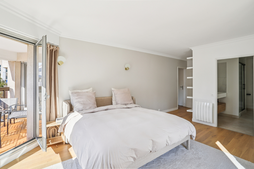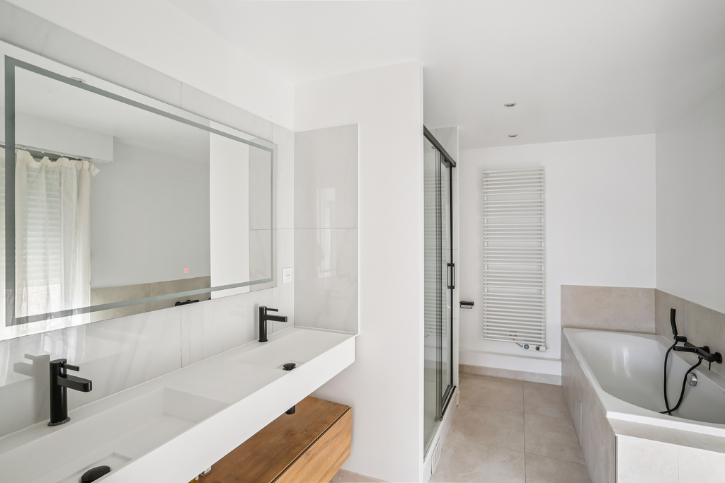 De style contemporain, entièrement refait à neuf, il surplombe le jardin et offre une luminosité exceptionnelle. Chaque pièce possède un accès à un balcon ou une terrasse.