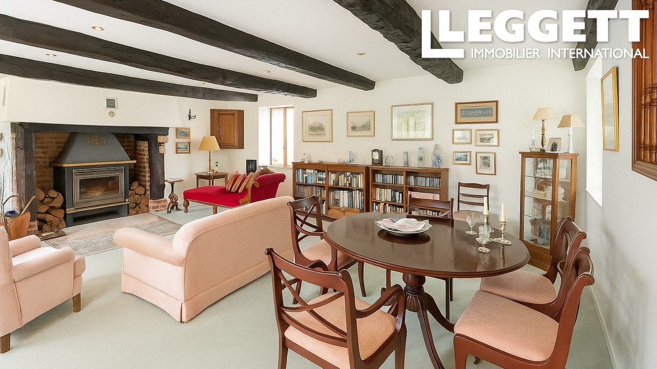 Entrée donnant sur le salon ouvert, la salle à manger et la cuisine équipée avec un grand poêle à bois. Le rez-de-chaussée comprend une pièce pouvant servir de chambre et une salle d'eau. WC séparé et buanderie. Le premier étage comprend 2 chambres doubles, un bureau et une salle d'eau.