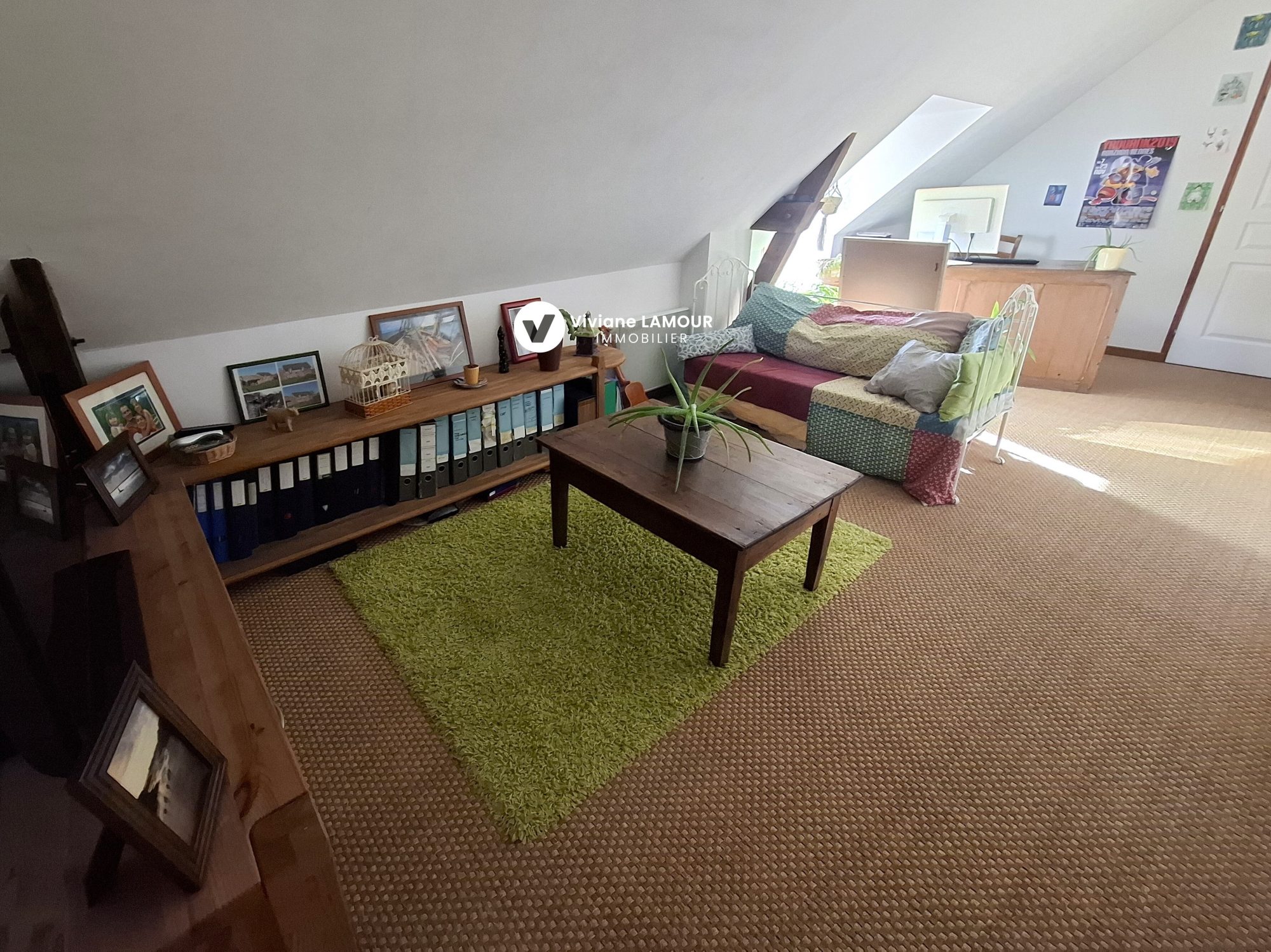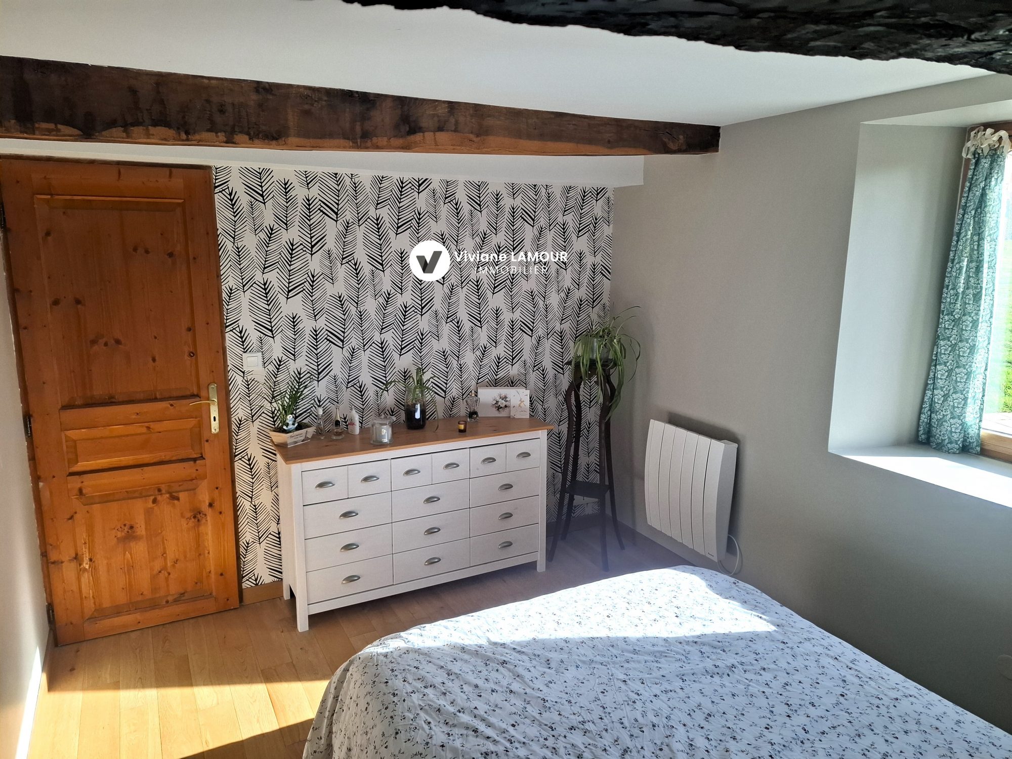 Viviane LAMOUR Immobilier vous invite à découvrir cette magnifique longère rénovée d'environ 130 m² et ses annexes : double garage et hangar, sur un terrain de près de 2400 m2
