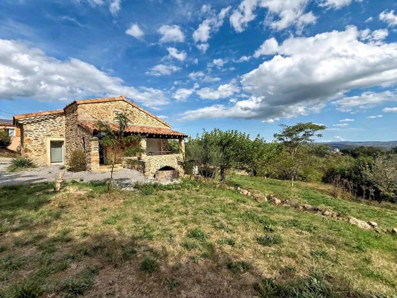 Sur un grand terrain constructible de 2270 m², charmante petite maison en pierre de 51m² toute rénovée avec une magnifique vue dégagée