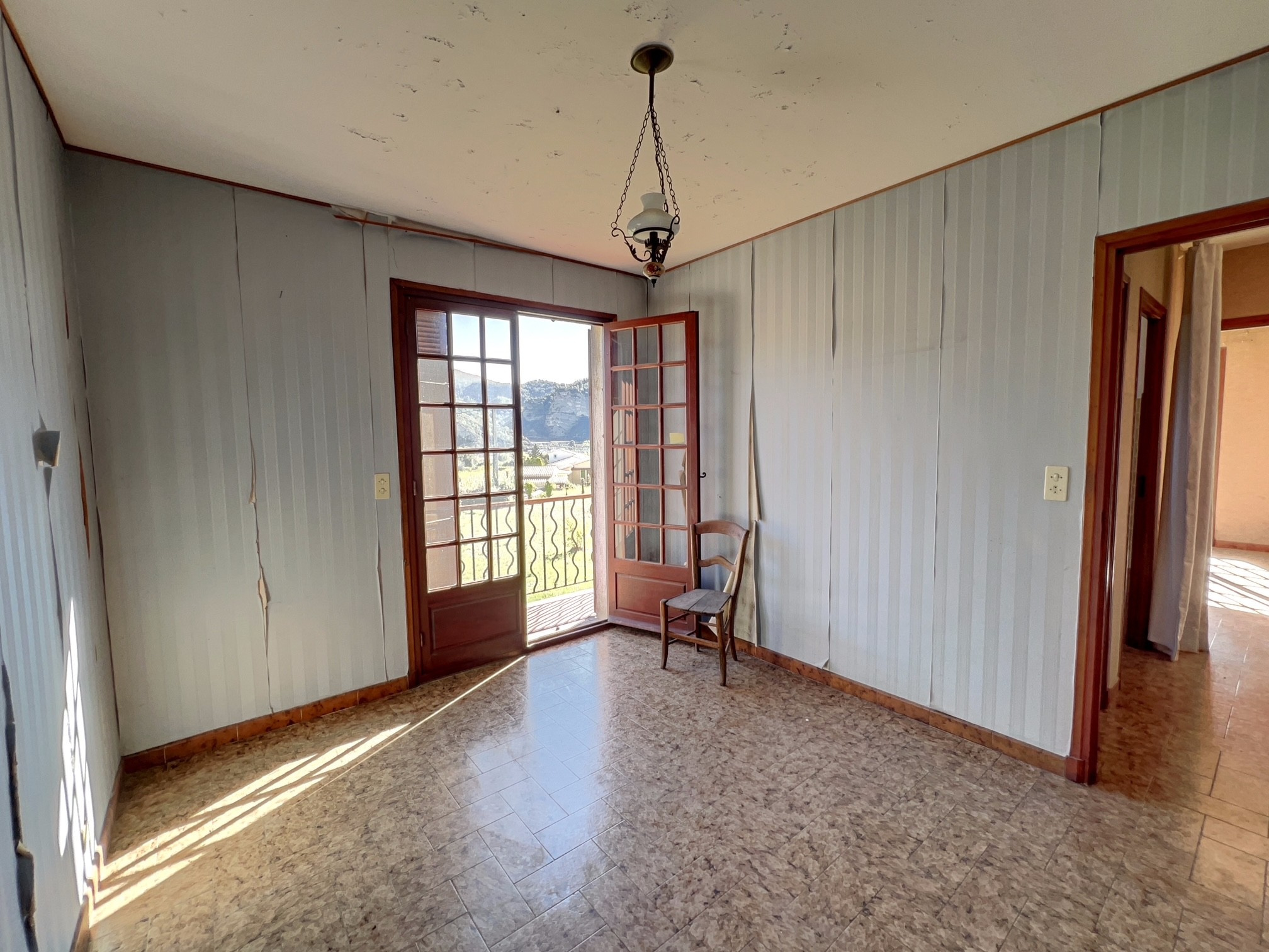 Le rez-de-chaussée est constitué d'un vaste garage de 98 m2. À l'étage, un porche mène à un hall d'entrée desservant une cuisine indépendante ainsi qu'un salon/séjour avec cheminée ouvrant sur une terrasse. Un dégagement conduit à trois chambres, un bureau, une salle de bains et un WC indépendant. Implantée sur un terrain plat d'une superficie de 811 m2, la maison bénéficie d'un extérieur agréable et verdoyant. Le bien présente un fort potentiel d'aménagement et de modernisation, permettant aux futurs acquéreurs de le personnaliser selon leurs goûts. A découvrir !