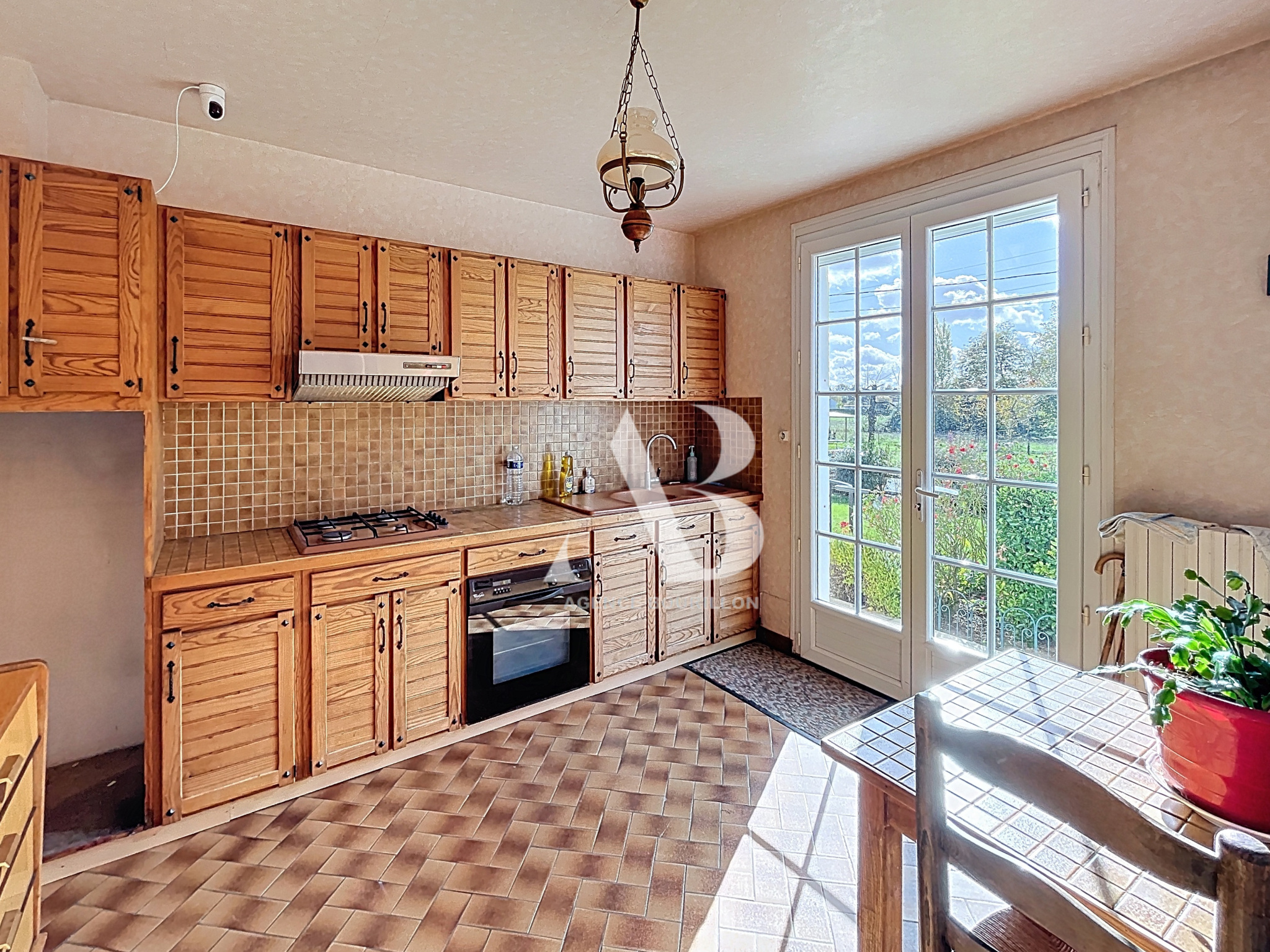 Au rez-de-chaussée : une entrée, un séjour / salle-à-manger avec cheminée insert, une cuisine équipée et aménagée, un WC indépendant, deux chambres, un bureau et une salle d'eau.