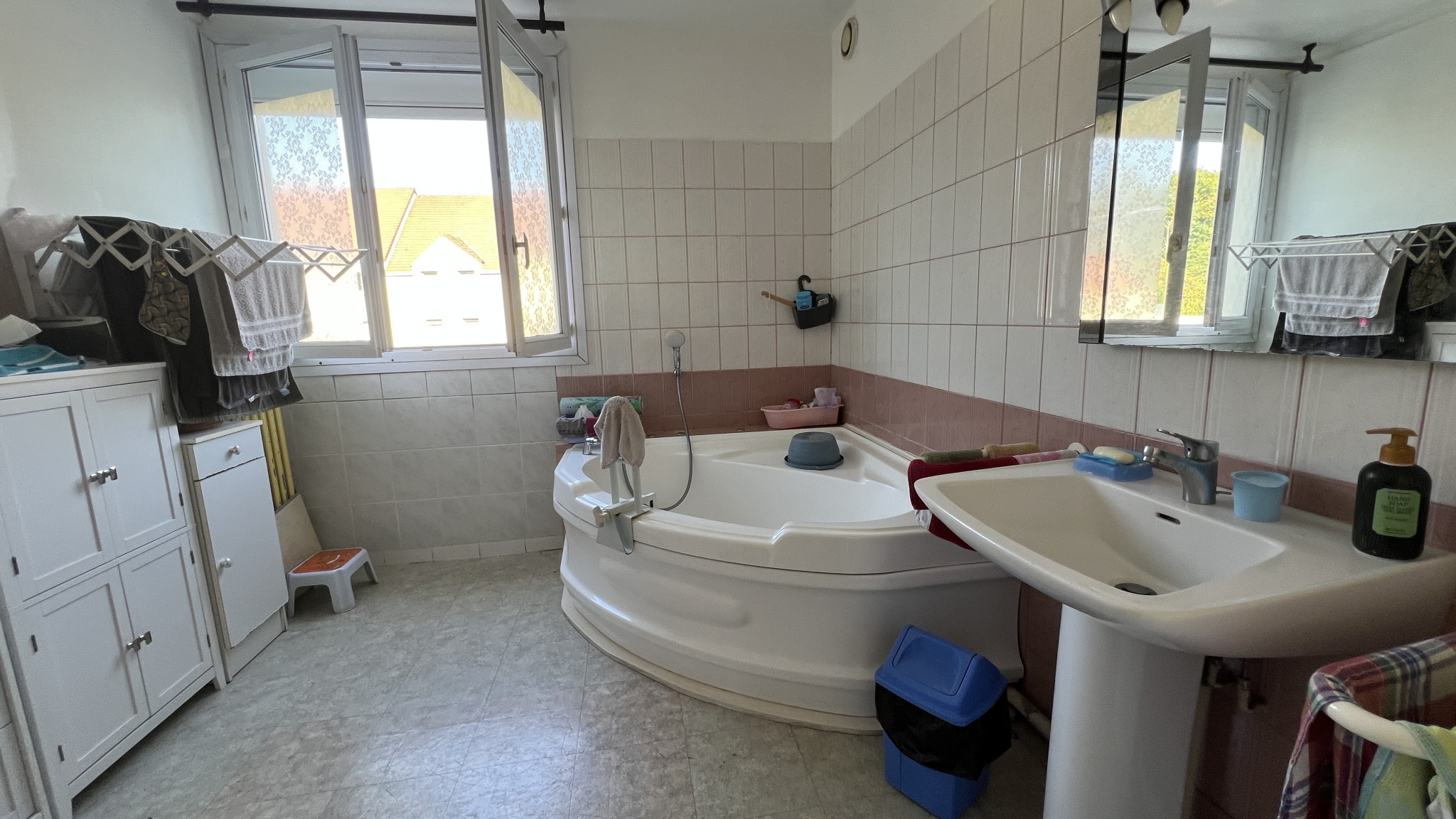 L'appartement se compose d'une entrée desservant un salon/salle à manger spacieux et très lumineux, d'une cuisine aménagée avec cellier attenant. Un couloir mène à trois belles chambres, une salle de bains très fonctionelle et des toilettes indépendantes. Une quatrième chambre est également envisageable.