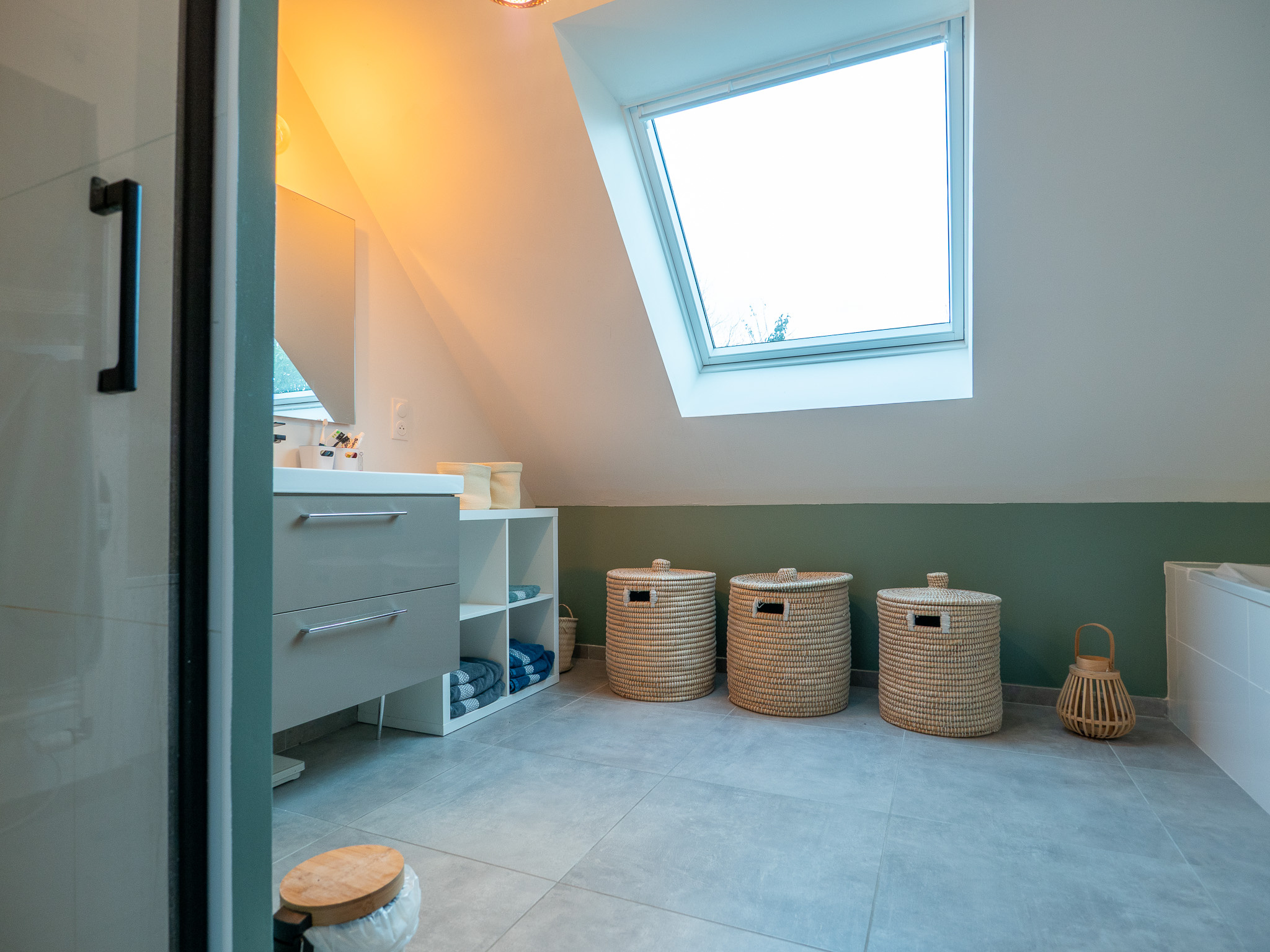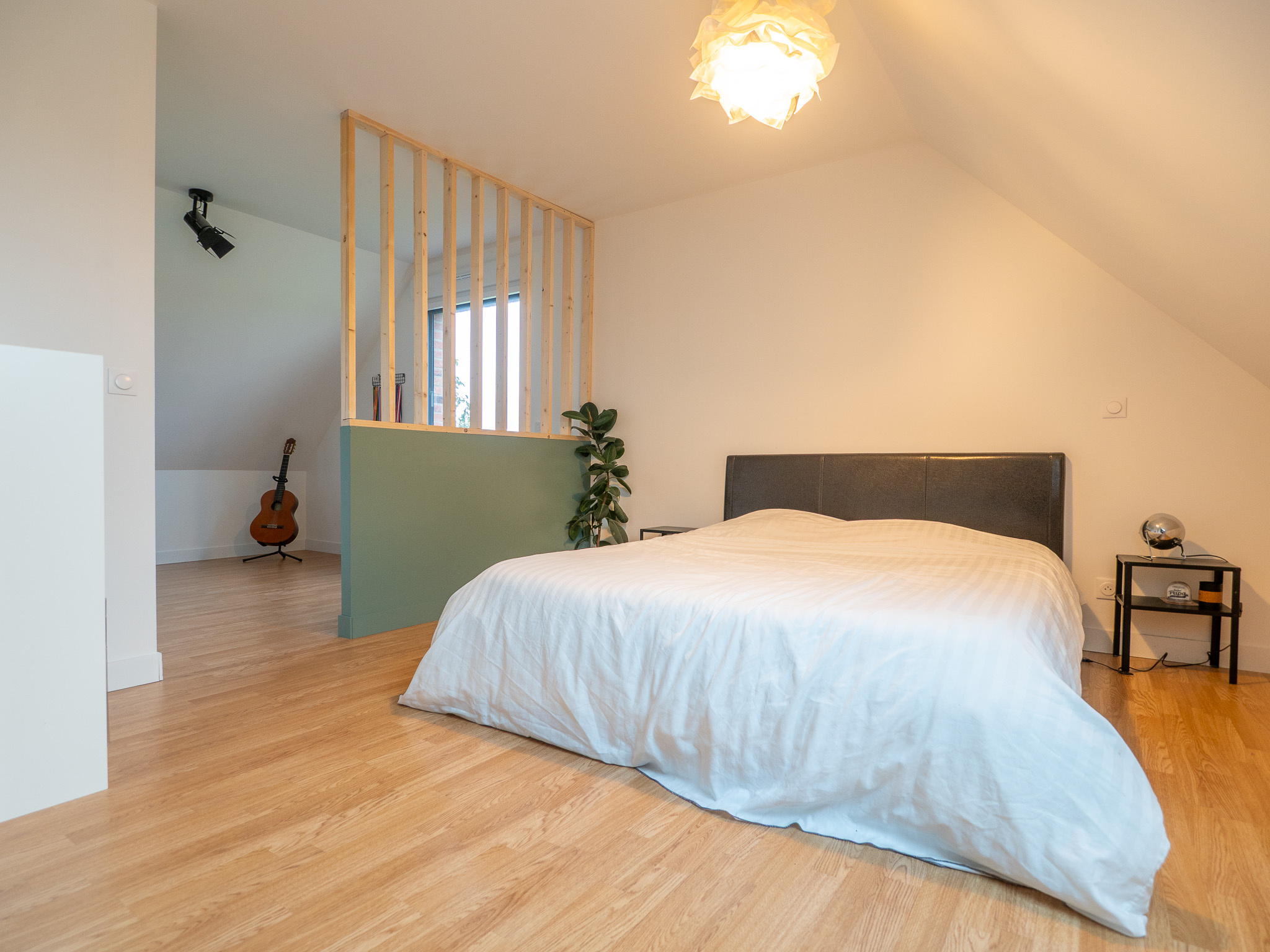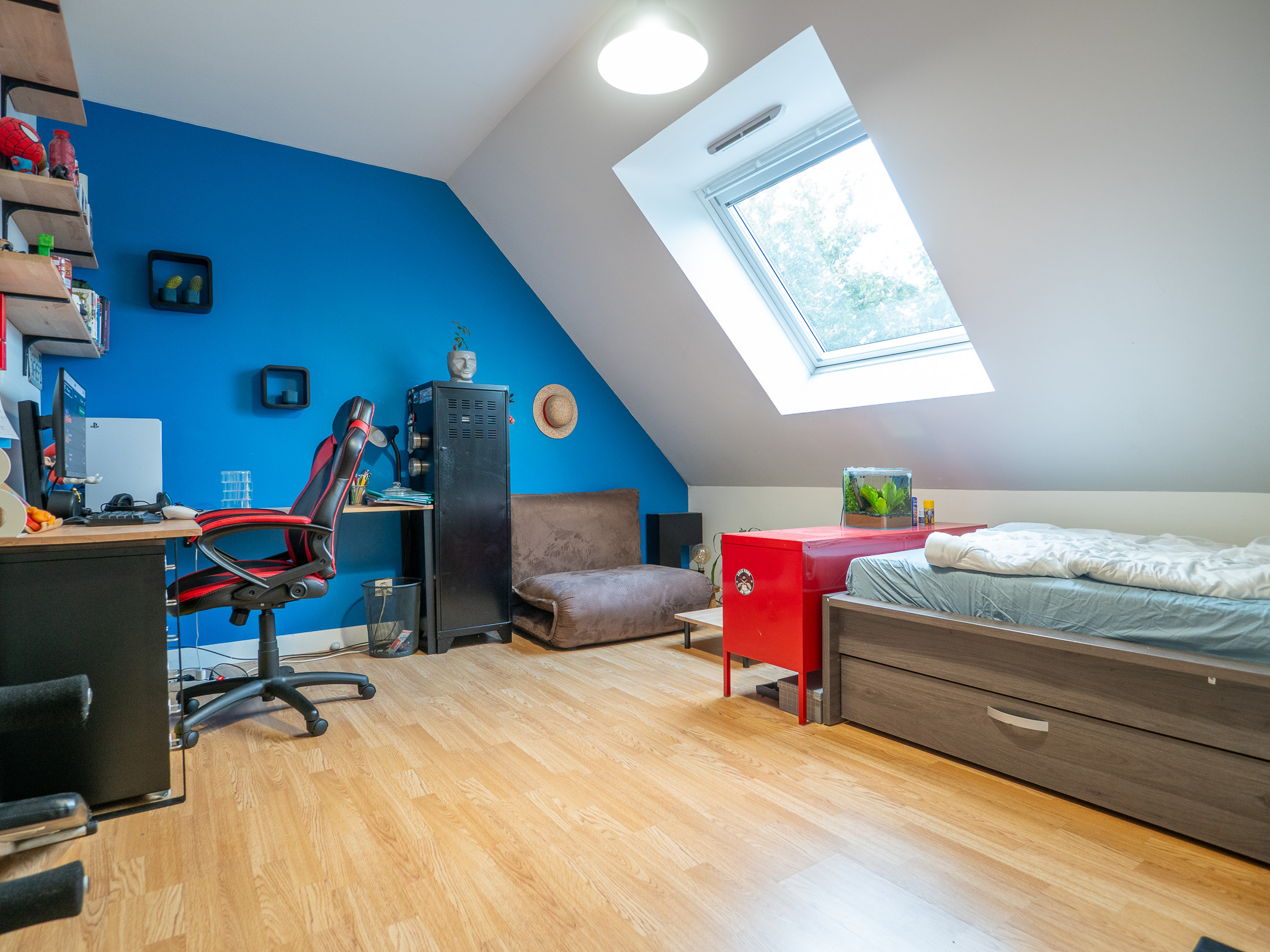 La maison dispose de 3 chambres, dont une suite parentale de 22m2 (possibilité de créer une 4e chambre) et de 2 salles de bain, répondant parfaitement aux besoins d'une famille.