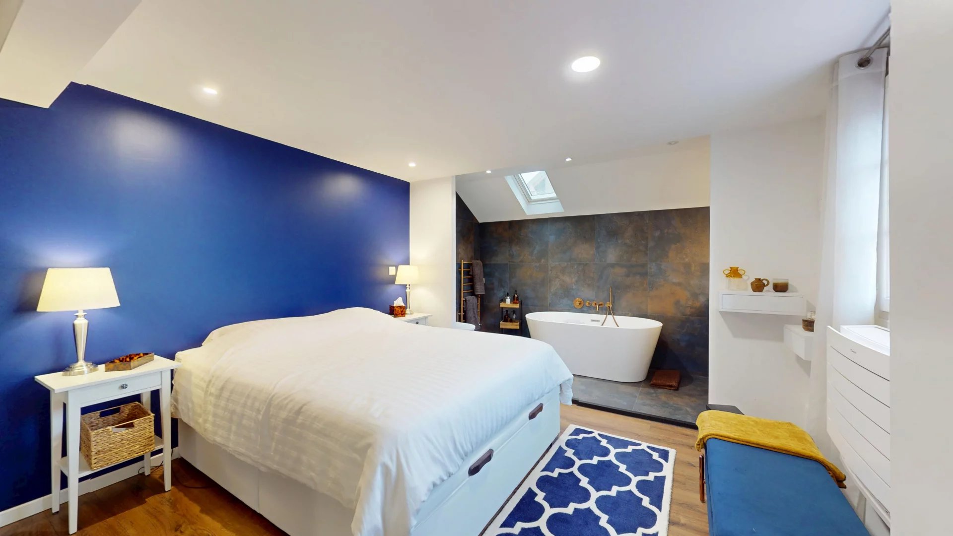 Un salon de 33m², parqueté, avec une cheminée qui donne immédiatement le ton, une grande cuisine moderne et ouverte pour cuisiner dans un cadre chic et convivial, une chambre confortable de 10m², ainsi qu’une superbe salle d’eau inspirée des bains grecs, avec une douche à l’italienne absolument magnifique.